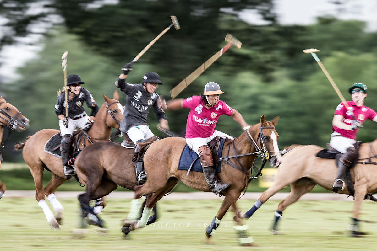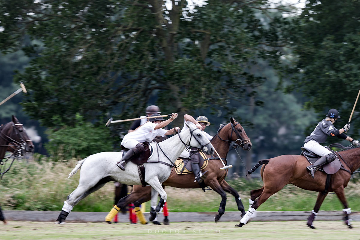 Doch zu Haus musste ich dann kämpfen. Stundenlang. Soll ich nun oder soll ich nicht? Schwarz-weiß oder Farbe? Ich habe mir das Hirn zermartert, kaum geschlafen und schließlich eine Lösung gefunden, mit der ich leben kann. Denn ich hätte gerne alle Fotos in Schwarz-Weiß publiziert. Sie sind stärker, konzentrieren sich mehr auf die Bewegung, den Kampf und den Ausdruck. Sie können einfach mehr. Sie sind noch energischer. Doch Polo hat auch immer mit Farben zu tun. Die Shirts, die Helme, die Pferde – die Farben unterscheiden die Teams und die Spieler. Was also tun?