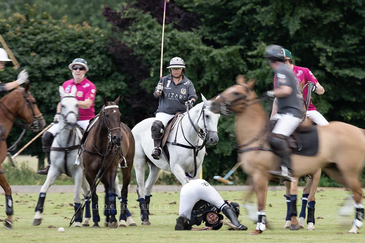 Zunächst musste ich meine Eindrücke verarbeiten. Das Polospiel an sich ist extrem schnell, extrem körperlich und ruppiger als ich zuvor dachte. Da wird gehackelt, gestochert, geschoben, abgedrängt und gebrüllt. Alles im vollen Galopp, halb hängend, halb sitzend, nach hinten verdreht. Guck nach vorn, sagte man mir früher immer. Das scheint in einem Polomatch nicht zu gelten. Vielmehr gilt, guckt dahin wo der Ball ist, egal in welche Richtung dein Pferd gerade läuft!
