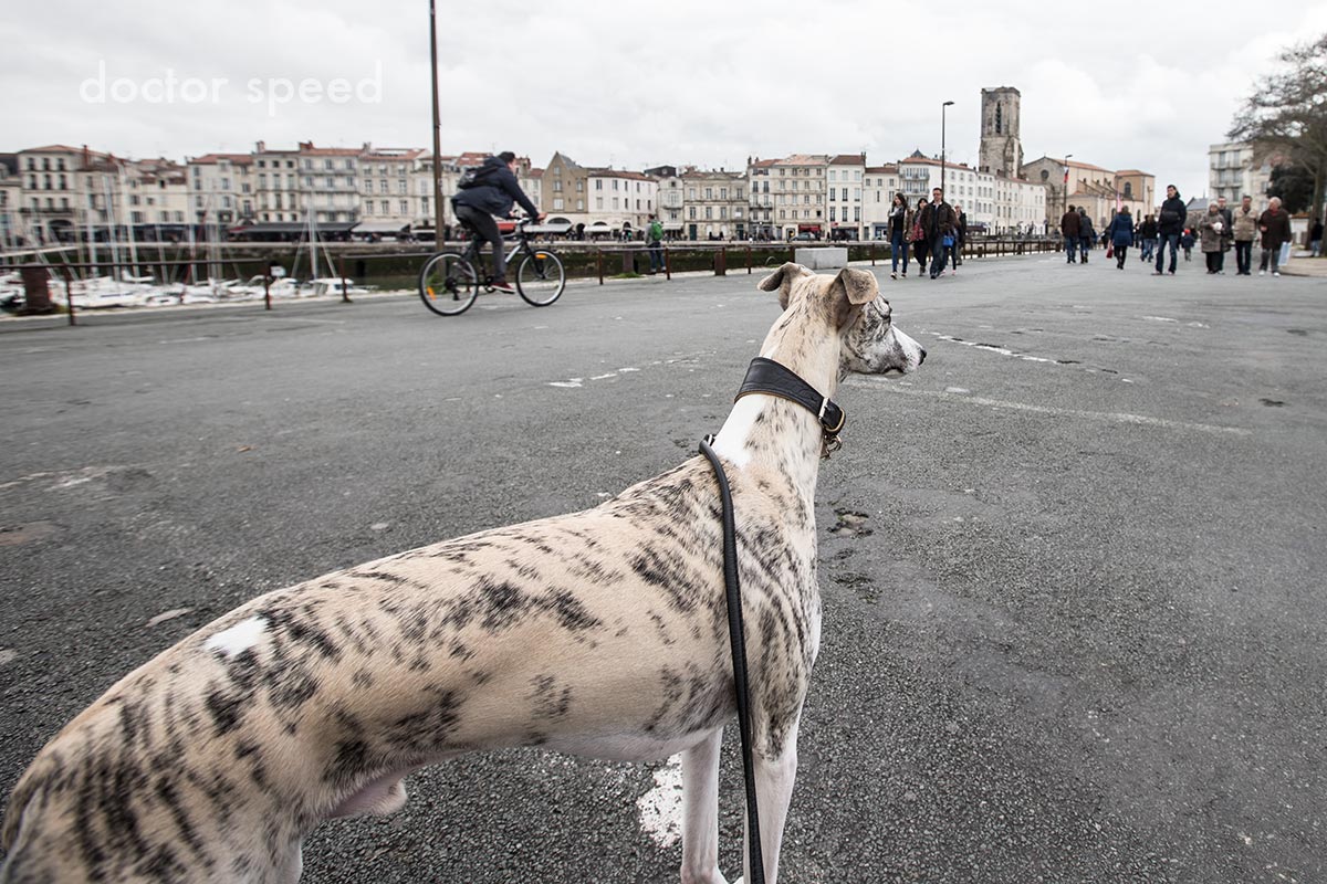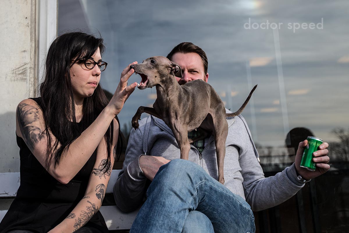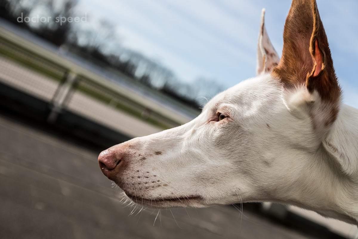 Will man mit diesem Objektiv Hunde für schön fotografieren, sie also möglichst in ihren natürlichen Proportionen erwischen, dann sollte man am besten die längste Brennweite – also 35mm – nutzen. Dann gibt es keine Verzerrungen, so dass jedes Körperteil auf dem Foto auch so lang bzw. kurz ist wie es sein soll. Wie unten auf dem Foto von Danny gut zu sehen, ziehen nämlich die kurzen 16mm ein Vordergrundelement ordentlich in die Länge.