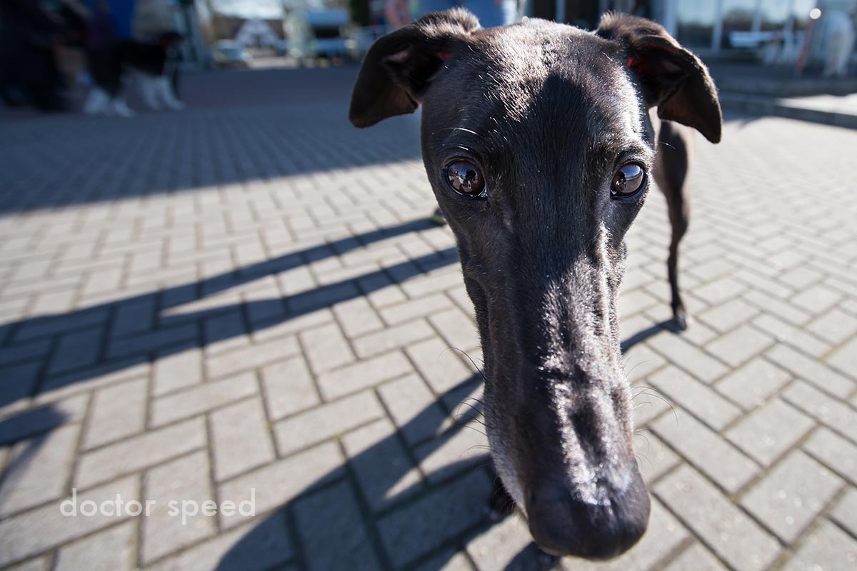 Bei der CAC-Ausstellung im März in Dinslaken zum z.B. wollte ich auf keinen Fall einfach nur Hunde fotografieren. Vielmehr hat mich der Trubel und die Stimmung außerhalb der Ringe interessiert. Das geht mit einem Superweitwinkel natürlich sehr gut. Ganz besonders dann, wenn so viel Licht da ist wie an diesem Tag.