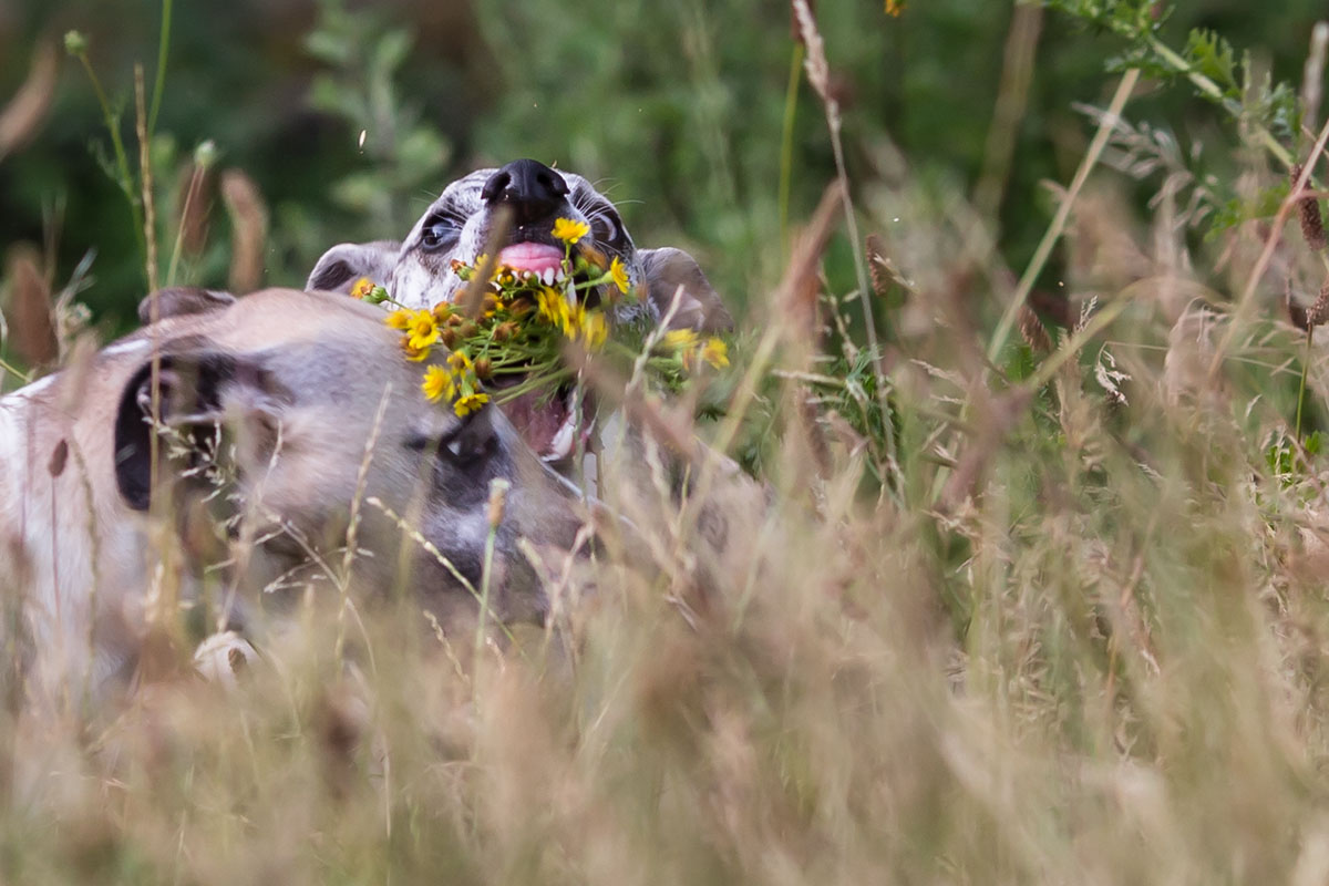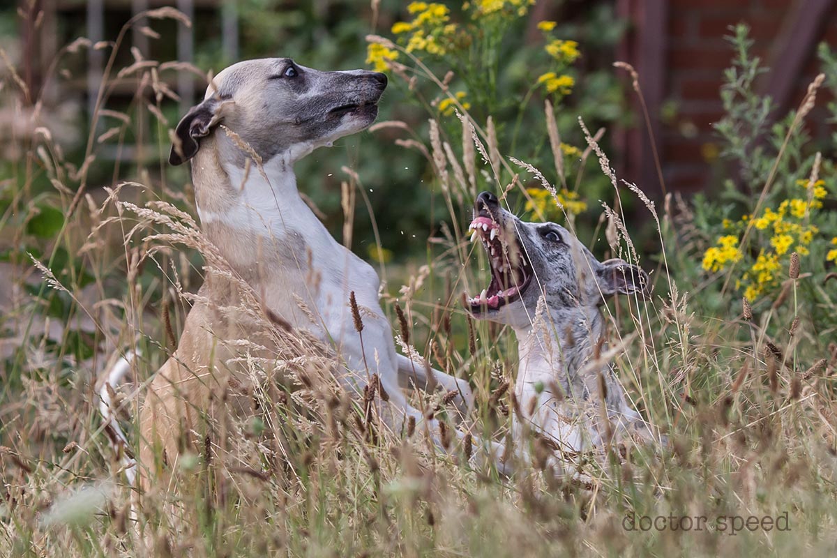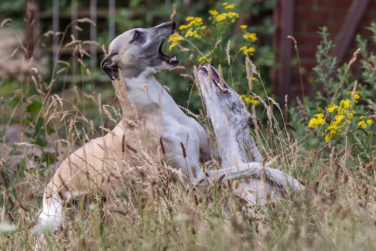 Besonders stolz bin ich, wenn uns an der Straße die Tante mit den fünf Fußhupen an fünf Flexileinen entgegen kommt. Bei Sichtung ihres Rudels habe ich noch nie eine Veranlassung gesehen, die Straßenseite zu wechseln. Die Tante mit den fünf Fußhupen tut es mittlerweile. Nicht etwa, weil meine beiden Whippets ihre Zwerge aufmischen würden. Nein, sie tut es, damit ihre eigenen randalierenden Klobürsten sie nicht von den Füßen holen.
