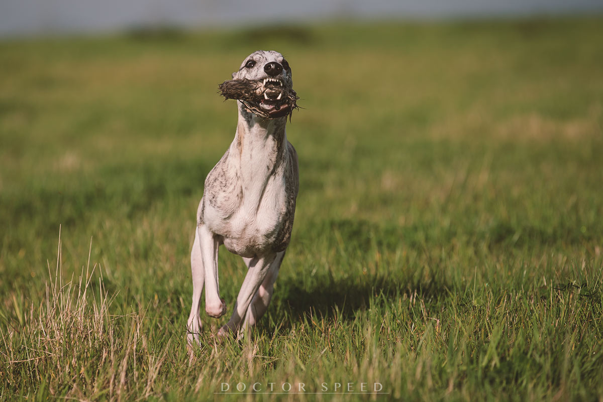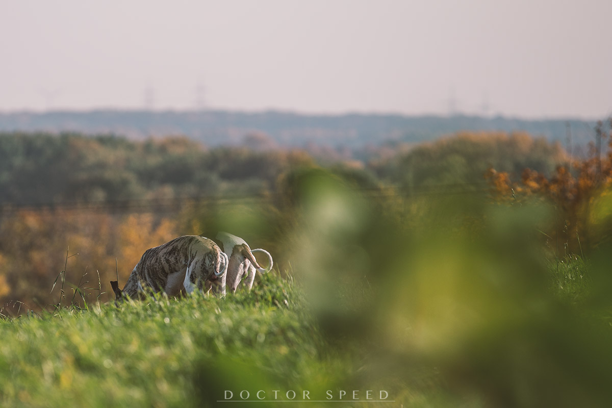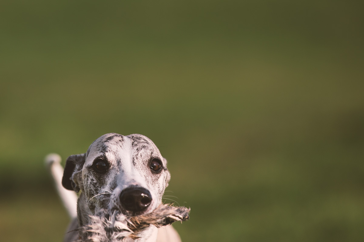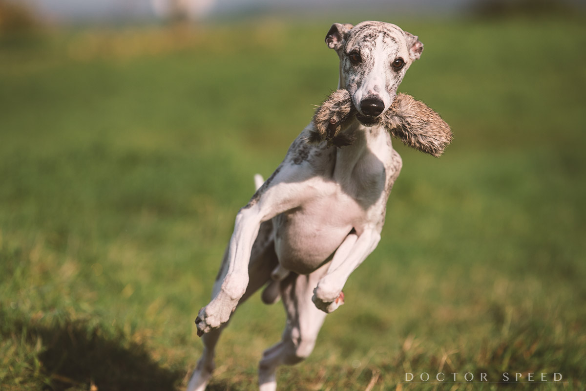 Bevor wir raus gehen, zeige ich Danny den Dummy und stecke ihn dann in die Tasche. Er ist sehr auf mich und Mono fixiert. Deshalb muss ich selbst auf unseren Haldenrunden kaum Sorge haben, dass er wegkommt, doch manchmal sticht es ihn eben. Dann gibt er Gas und donnert genau dort hin, wo ich ein großes, imaginäres Verboten-Schild aufgestellt habe. Ein kurzer Pfiff durch die Finger muss dann reichen, dass er kehrt macht und zurück kommt. Tut er es dann tatsächlich ohne eine Sekunde zu zögern, dann gibt es zur Belohnung den Bunnydummy. Er darf zwei oder drei wilde Runden damit drehen, muss ihn aber dann sofort wieder abgegeben. Freiwillig! Das ist eine anspruchsvolle Extraübung, klappt aber mittlerweile ganz gut.