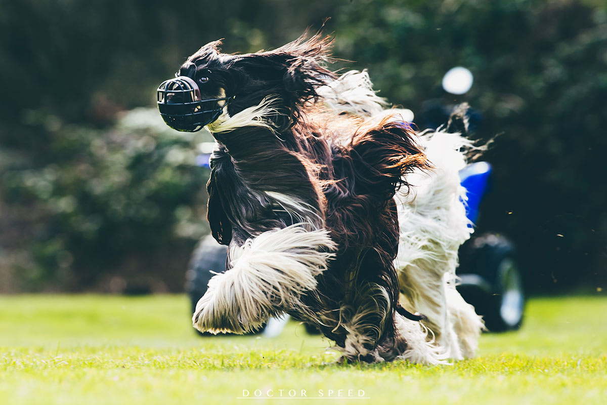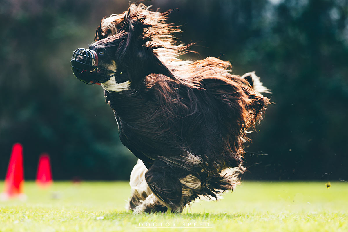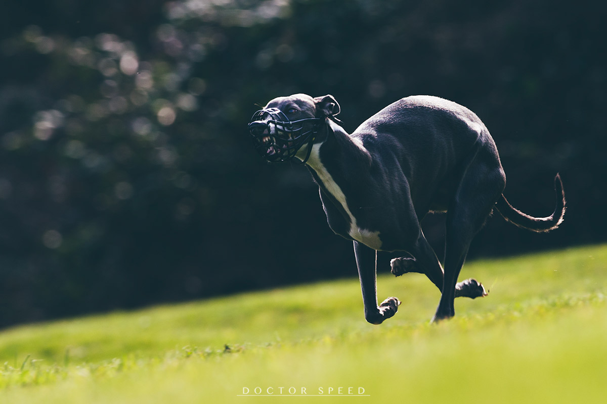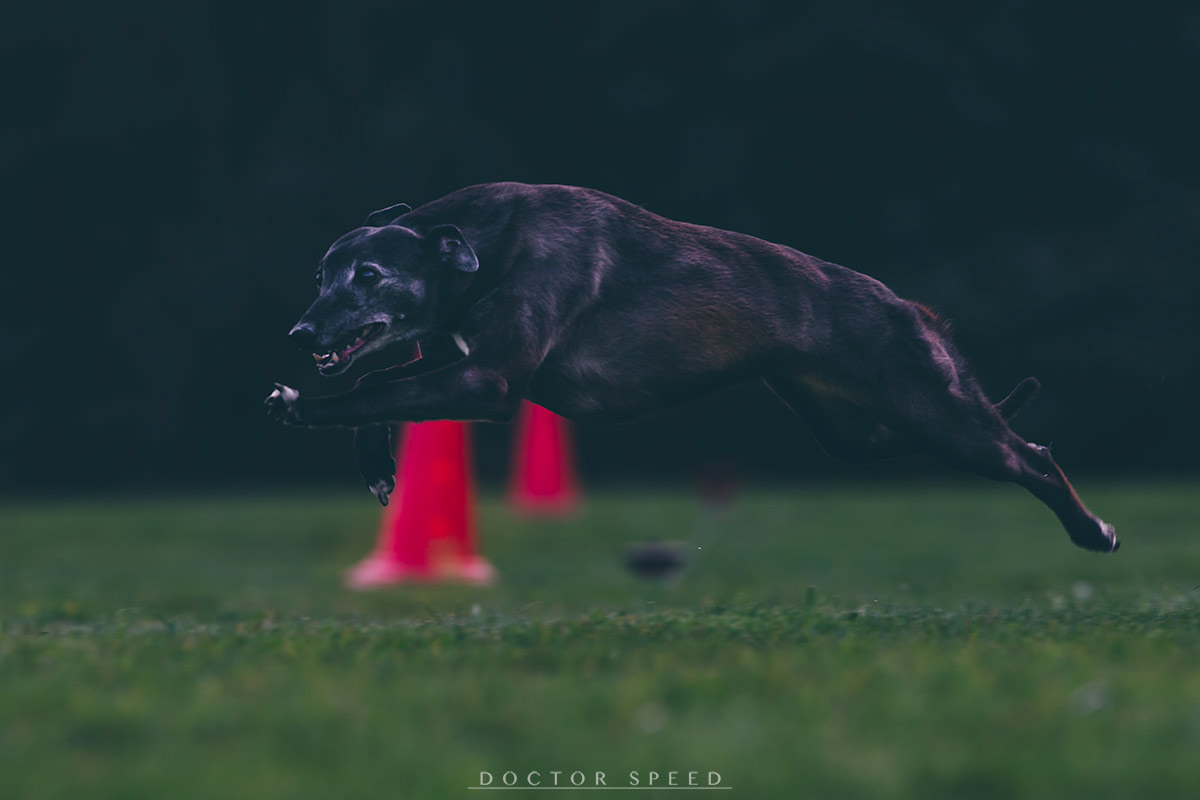 Vorsorglich bleibe ich mit Mono immer weit weg vom Coursingfeld, doch sobald er die Maschine hört, macht es in seinem Kopf laut Klack. Dann ist es an mir, Ruhe zu bewahren und ihn immer wieder in die Realität zurückholen, damit er nicht schon vor seinem Lauf völlig fertig ist.