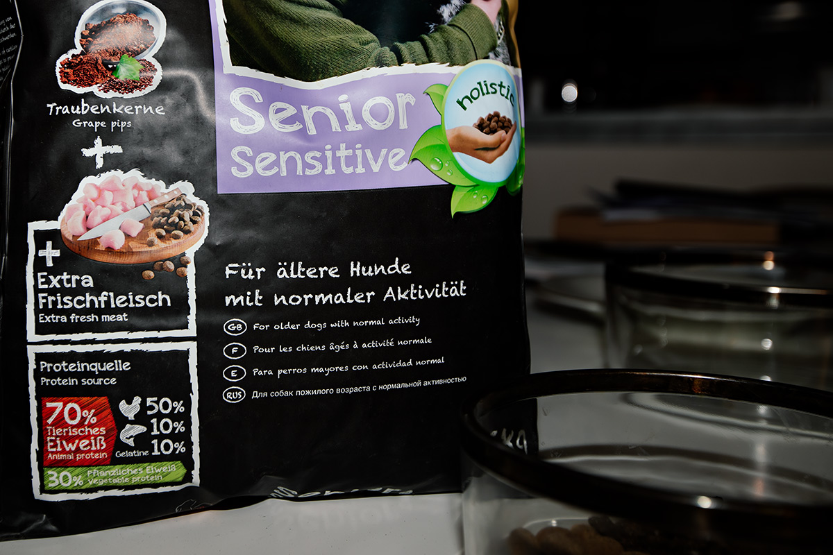 Das Belcando Senior Sensitive - Die Geier kreisen. Ich kann hier kein Futter fotografieren, ohne dass mir mindestens zwei Hunde ständig auf den Hacken stehen.