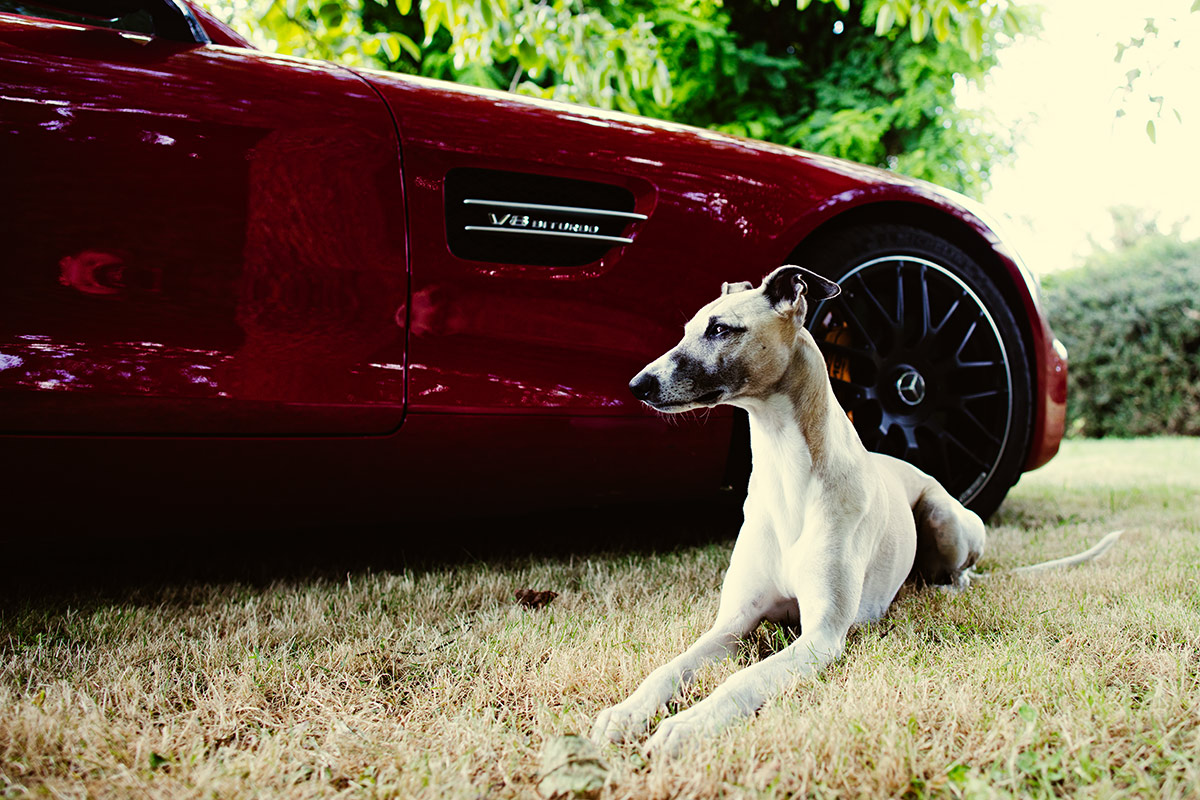Immerhin könnte man mit diesem Traumauto die Einkäufe für die Hunde erledigen. Es würde also durchaus zum Zweitmobil taugen, in dem Kauartikel, Trockenfutter, Gefrierfleisch und ähnliches auf sehr sportliche Weise ihren Weg nach Hause fänden. (Das ginge übrigens auch mit der fast 659 PS starken Corvette Z06. Nur so zur Info für die Verzweifelten.) Außerdem macht sich der AMG GT extrem gut als Gartenskulptur. Wer es mag, kann seinen Windhund neben seine lasziv geschwungenen Kotflügeln in eine elegante Position bringen. Gäste werden hingerissen sein.