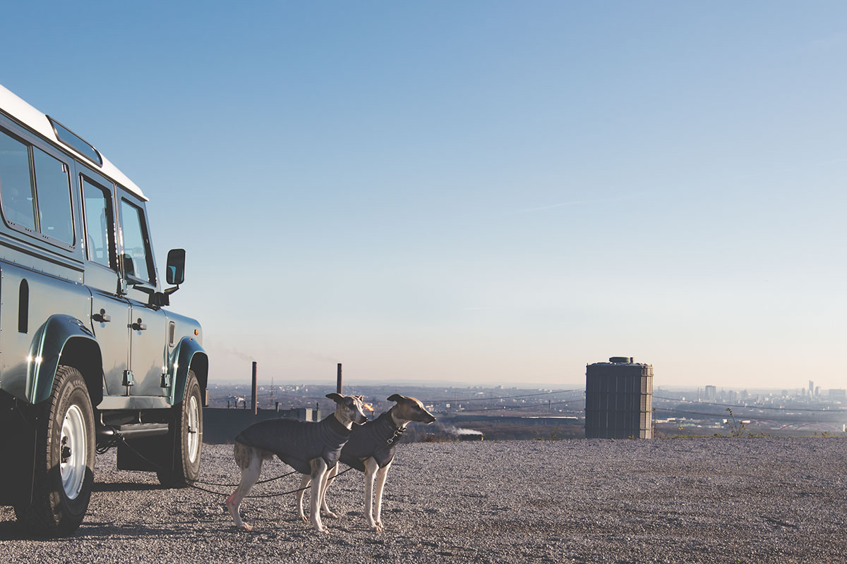 Während unserer wirklich phantastischen Ausflügen mit dieser automobilen Ikone quollen Mono und Danny bei jedem Stop förmlich aus ihrer Box heraus und brüllten ganz im Sinne von Braveheart Freiheit!. Eine Box einfach ins Heck gestellt, ist also keine Lösung. Man müsste die hinteren Sitze ausbauen und ein Brett über die Radhäuser legen, um eine große ebene Fläche zu schaffen. Außerdem ist die Größe des Defenders und sein gestern wie heute schrömmeliges Lastwagenfeeling gewöhnungsbedürftig. In einem Ballungsraum wie dem Ruhrgebiet ist diese Antiquität aus Aluminium und Landlordattitüde zwar immer noch schön, aber vollkommen überflüssig.