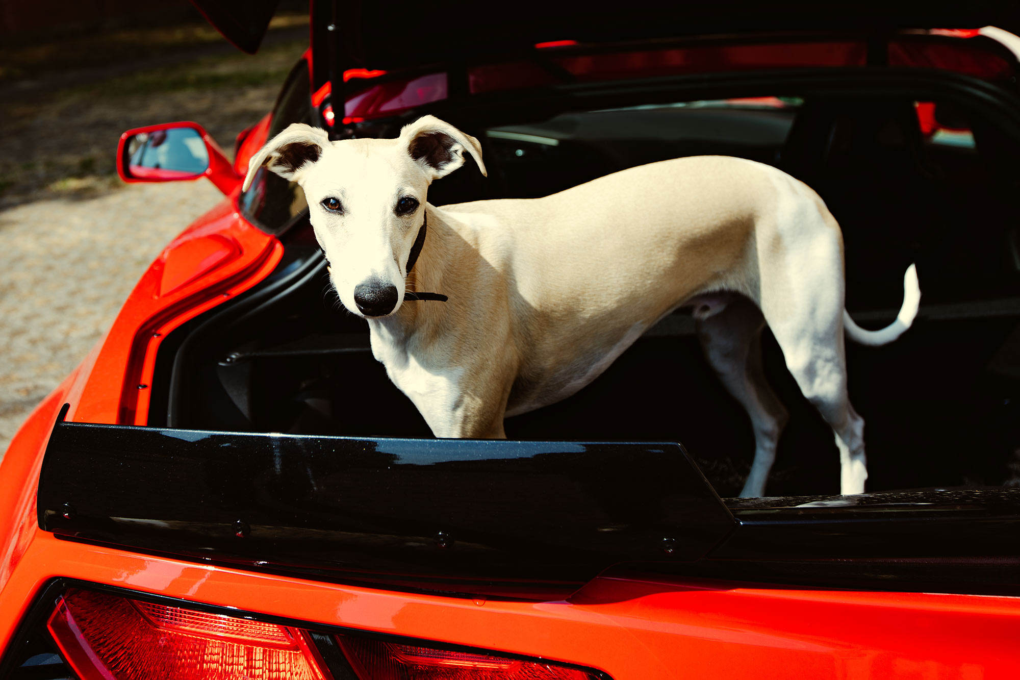 Der Hund im Auto? Ein heikles Thema. Entweder hast du dicke Schlappen und viel Wumms unter der Haube oder du hast Hunde. Wer beides haben kann, sei gesegnet, denn in die fetten Spaßmobile passt eventuell noch ein Jack-Russel Terrier auf den Schoß des Beifahrers, aber ganz sicher nicht drei Whippets.