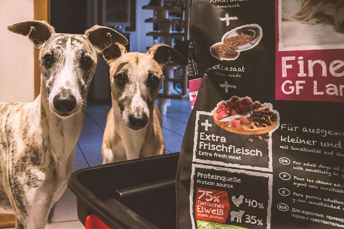 Das war Ende August, nachdem beide mir quasi synchron das Trockenfutter von Wolfsblut vor die Füße gespuckt hatten. Wie ich später dann hörte, ging das nicht nur mir so. Viele andere Whippet- Schrägstrich Windhundbesitzern mussten sich täglich die gleichen angewiderten Langnasen angucken und sodann notgedrungen über Alternativen nachdenken.