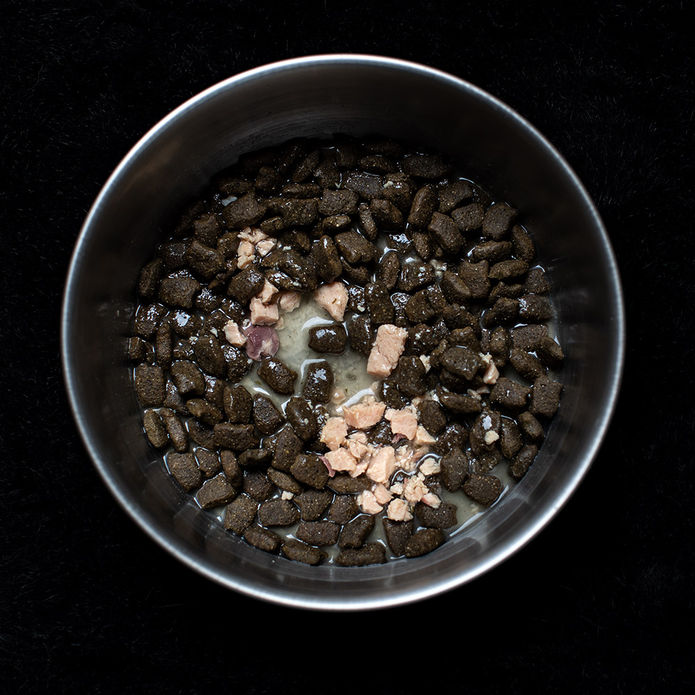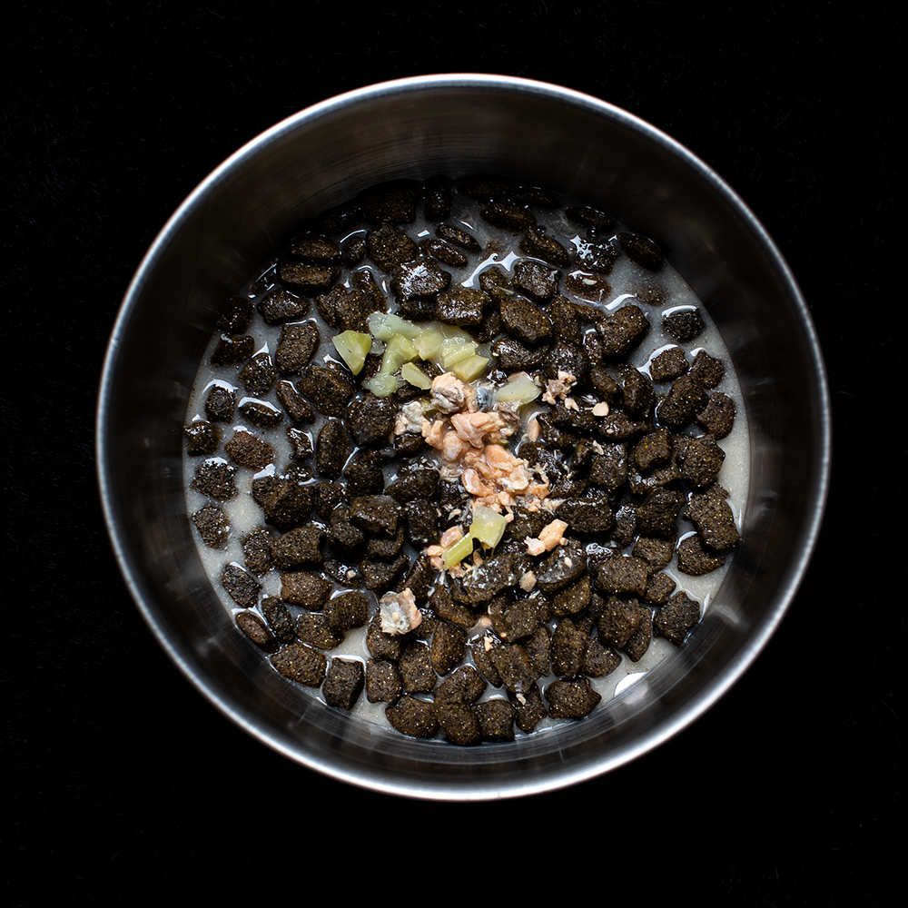 Ich fange mal hinten an. Mono liebt die Sorte Fresh Salmon. Das ist deshalb der Rede wert, weil er Trockenfutter mit Fisch zwar einen Tag lang mag, es aber am nächsten Morgen dann wiederum kategorisch ablehnt. Wenn Fisch, dann bitte frisch in Butter gebraten! Doch dieses Futter mit dem passenden Topping dazu ist genau sein Ding. Er nimmt die anderen vier Sorten genauso gern, aber sein Streben an die Fischtheke ist außergewöhnlich.