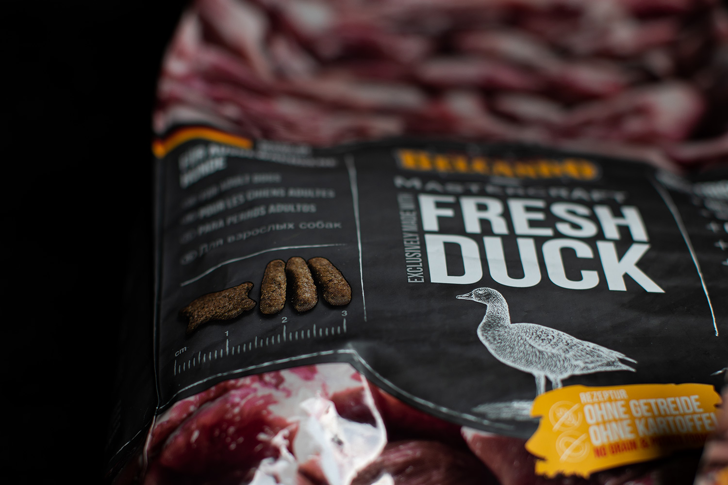 Seit vielen Monaten bekommen die Jungs kein anderes Futter als Belcando Lamm und Reis mit einem Klecks Finest Selection darauf. Ich weiß mittlerweile genau, dass die Umstellung von einem Belcando Trockenfutter zum anderen für meine Hunde absolut keine Problem darstellt. Als das Paket mit dem neuen Mastercraft eintraf, stellte ich mir also nur eine Frage: Welches füttere ich zuerst? Frech Salmon, Turkey, Duck, Beef oder Lamm? Fisch? Ne, damit warte ich mal! Ich wählte Fresh Turkey mit dem passenden Topping aus dem Tütchen.