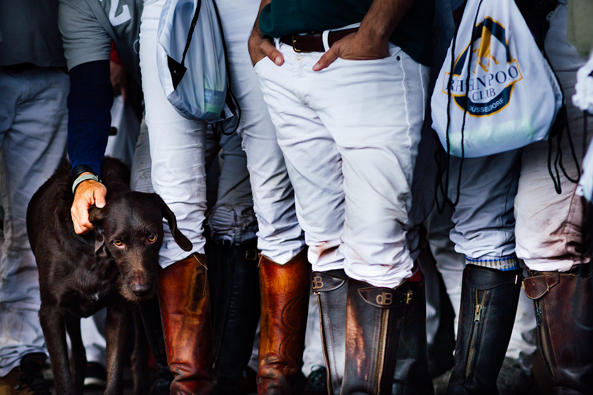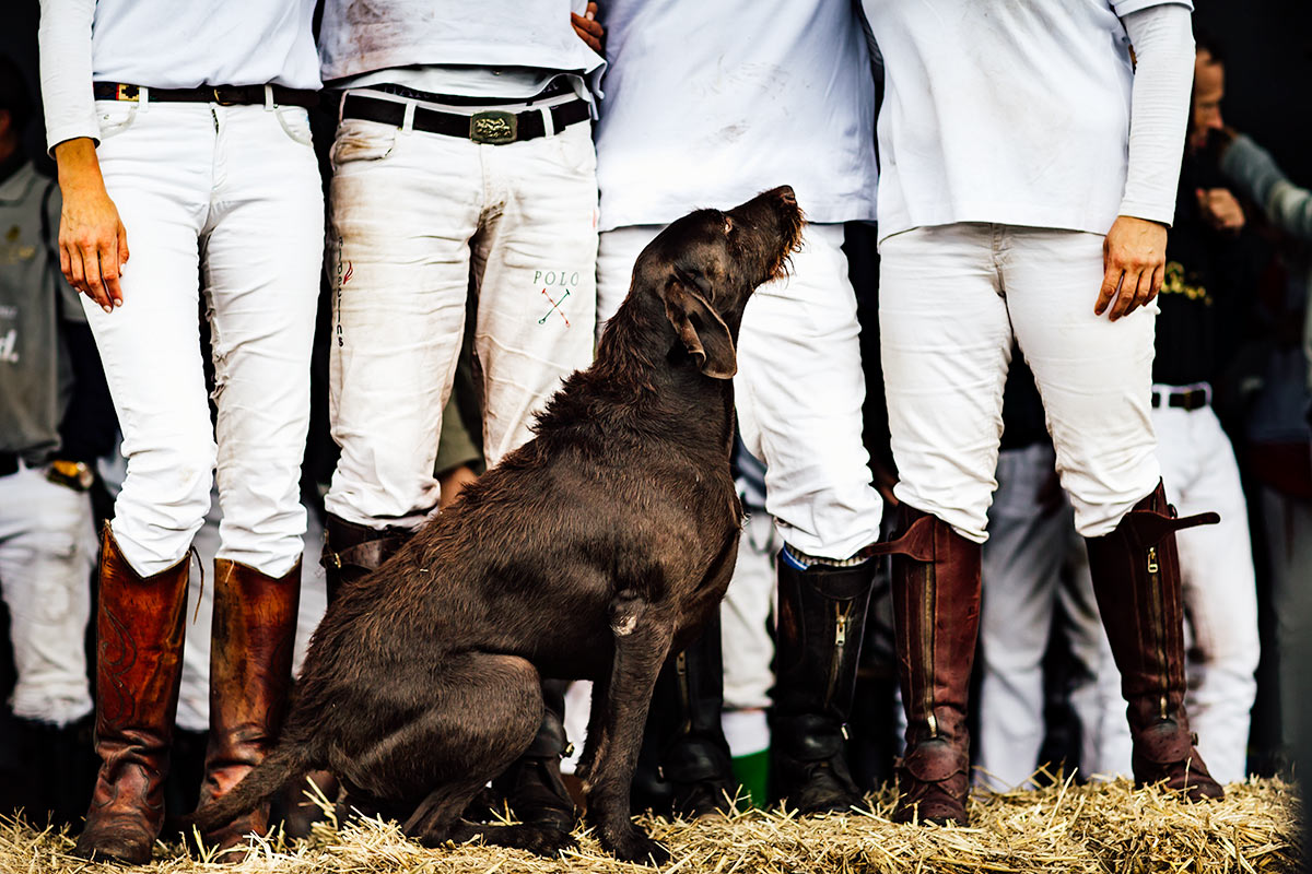 Er ist immer da, immer dabei und immer mittendrin. Er läuft immer ohne Leine und ist immer freundlich. Er weiß genau, dass er das Polofeld besser nicht betritt und bewegt sich traumwandlerisch sicher zwischen den Pferden hindurch.