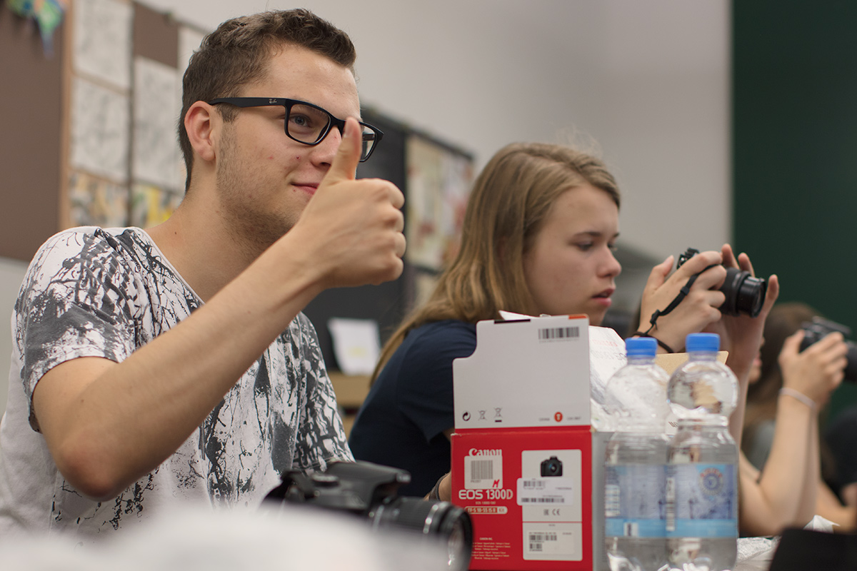 Mit dem Rüstzeug, das Etter ihnen über die Reportagefotografie an sich und über die Authentizität eines jeden Fotos im Speziellen mitgiebt, sollen die Schüler in den nächsten Tagen ihre eigenen Geschichten aufspüren und erzählen. Ihr Thema: Die 17 Ziele (17 Sustainable Development Gaols), die die UN 2015 festgelegt hat, um Hunger und Armut abzuschaffen, das Klima zu schützen, Frieden, Bildung, Gesundheit und Gleichberechtigung für jeden Menschen auf dieser Welt zu sichern. Das alles klingt fast zu groß für einen Heranwachsenden.
