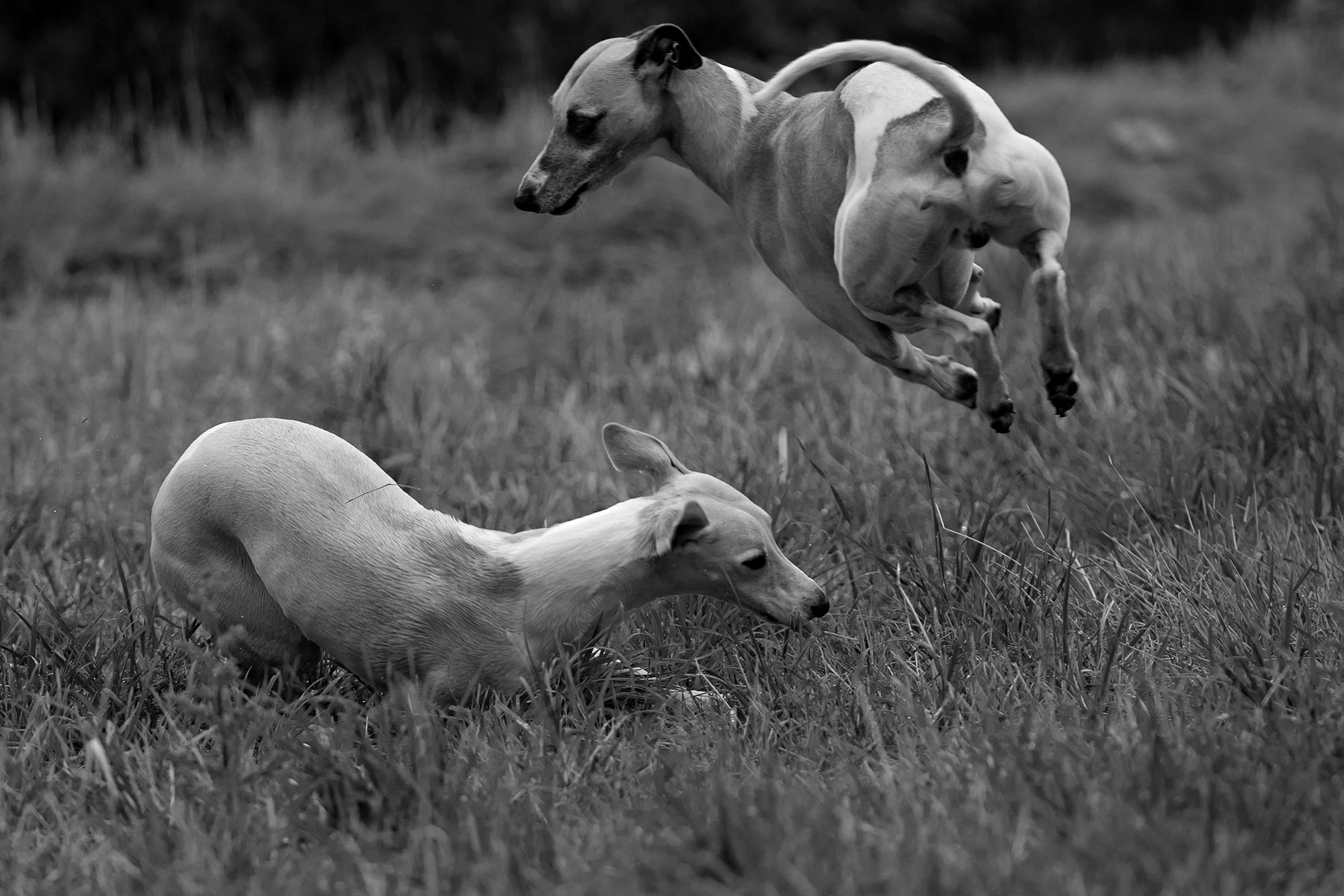 Ich sitze dann ganz still mit der Kamera in der Wiese und grinse im Kreis. Die Lebenslust und die Kraft der drei verrückten Whippets besiegt in solchen Momenten alles. Sie sind explosiv, wild, urkomisch, kopflos, wahnsinnig, akrobatisch. Und dabei sie haben keine blasse Ahnung, wie glücklich sie mich machen.