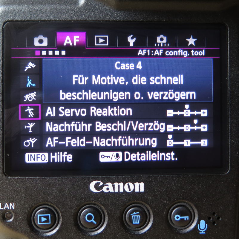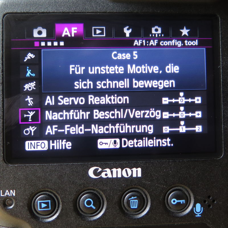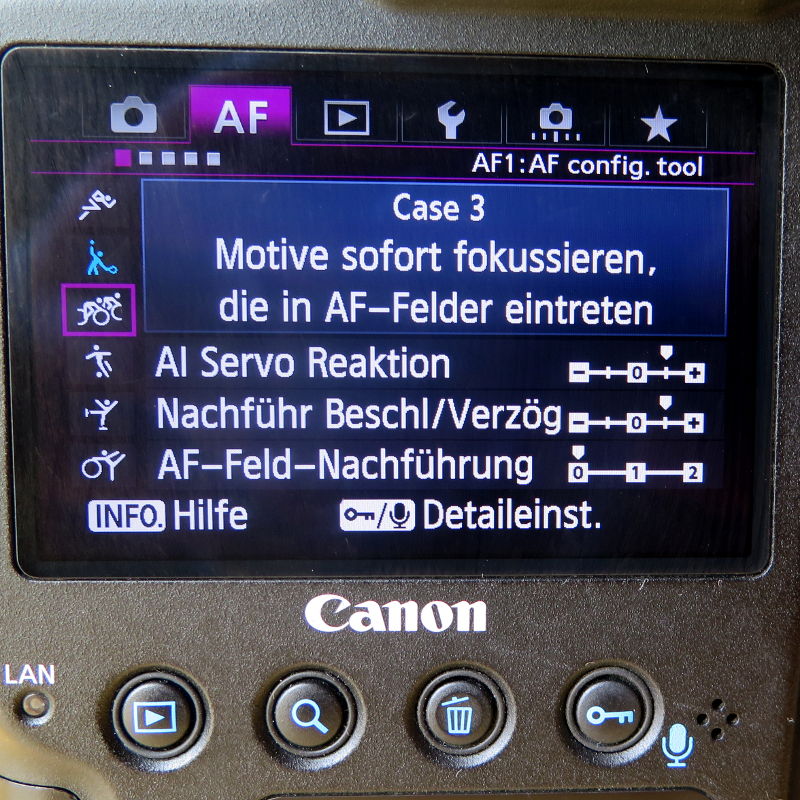 An der Bahn werde ich am Sonntag mal Case 3 ausprobieren. Ich bin gespannt, ob der Autofokus die Renner packt, die um die Kurve geschossen kommen.