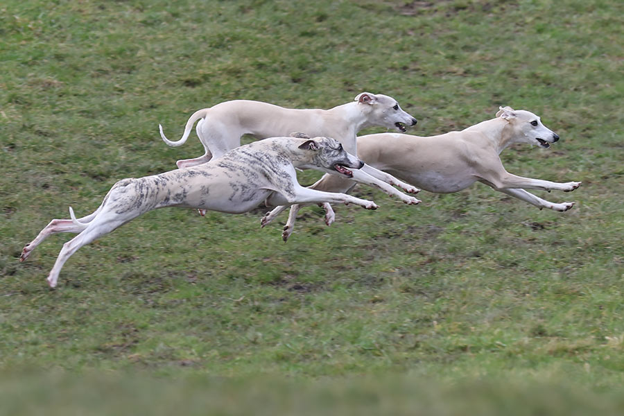 Sind Whippets im Rudel unterwegs, sollten sie unter intensiver Dauerüberwachung stehen. Denn setzt einer von ihnen zum Jagen an, sind im schlimmsten Fall alle weg.