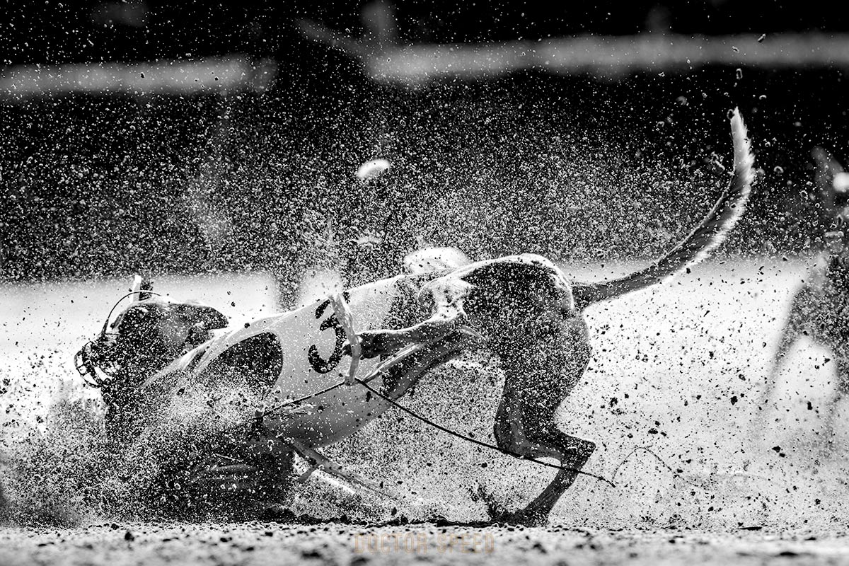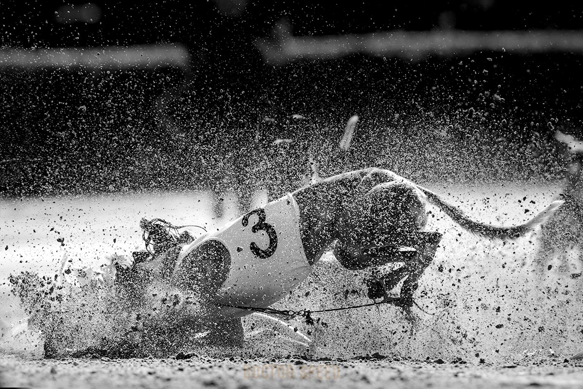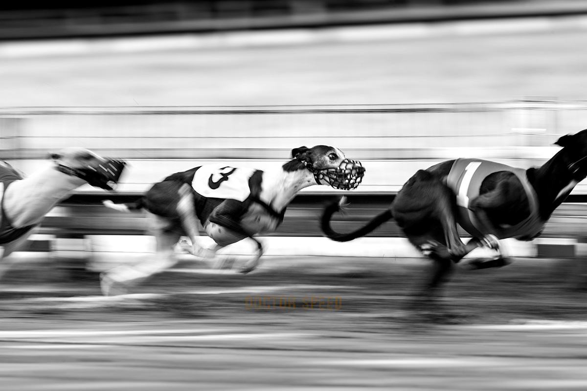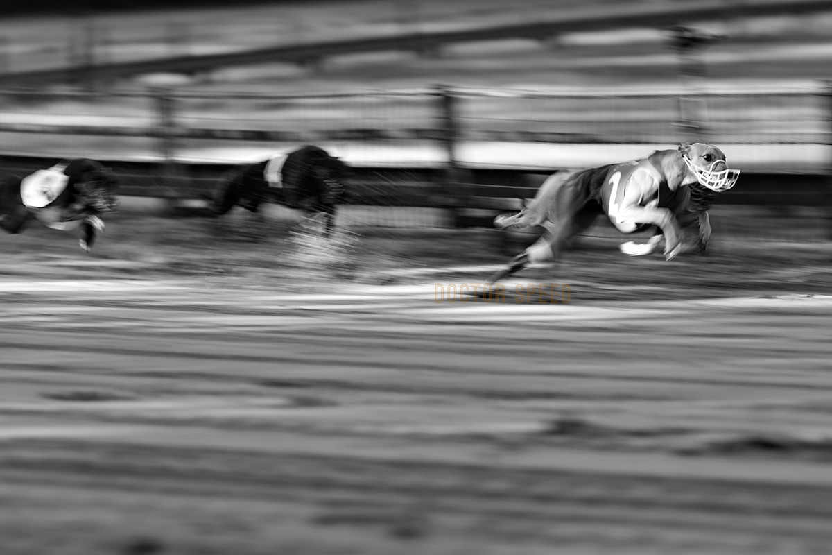 „Warum nicht?“ „Sie haben hier Gegenlicht.“ „Ja.“ „Sie haben Schlagschatten und die Hunde sind dann auf den Fotos ganz dunkel.“ „Ja.“ sagte ich wieder und wurde etwas ungeduldig, weil er mich ablenkte. Einen Lauf hatte ich wegen ihm schon verpasst und das Licht würde sich schnell ändern. „Sie müssen auf die andere Seite gehen.“ „Das ist nett, dass sie mir Ratschläge geben wollen, aber ich bleibe lieber hier. Danke!“ Kopfschüttelnd ging er zurück hinter die Hecke zu seiner Kamera und seinem Klappstühlchen. Soll er doch denken, dass ich einen an der Murmel habe, Hauptsache er lässt mich in Ruhe meine Fotos machen. Etwas aus dem Tritt gebracht widmete ich mich wieder den Hunden auf der Bahn.