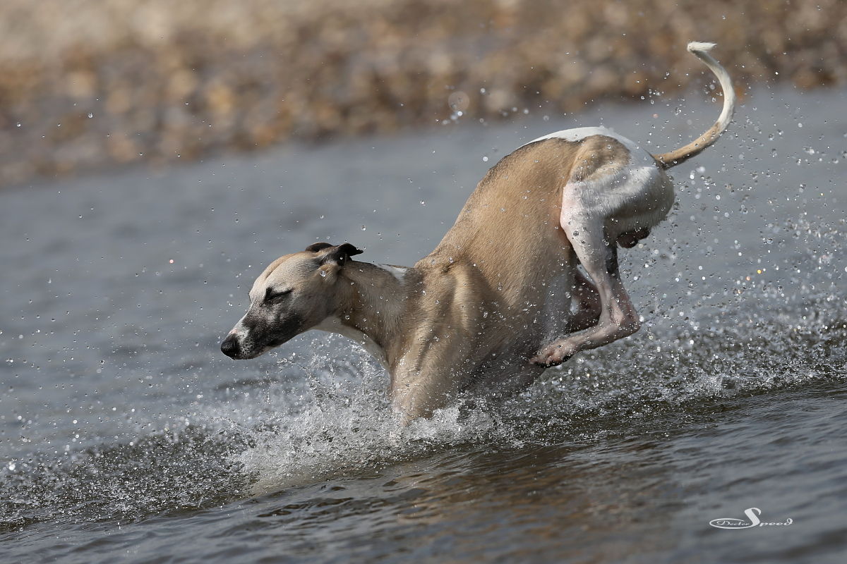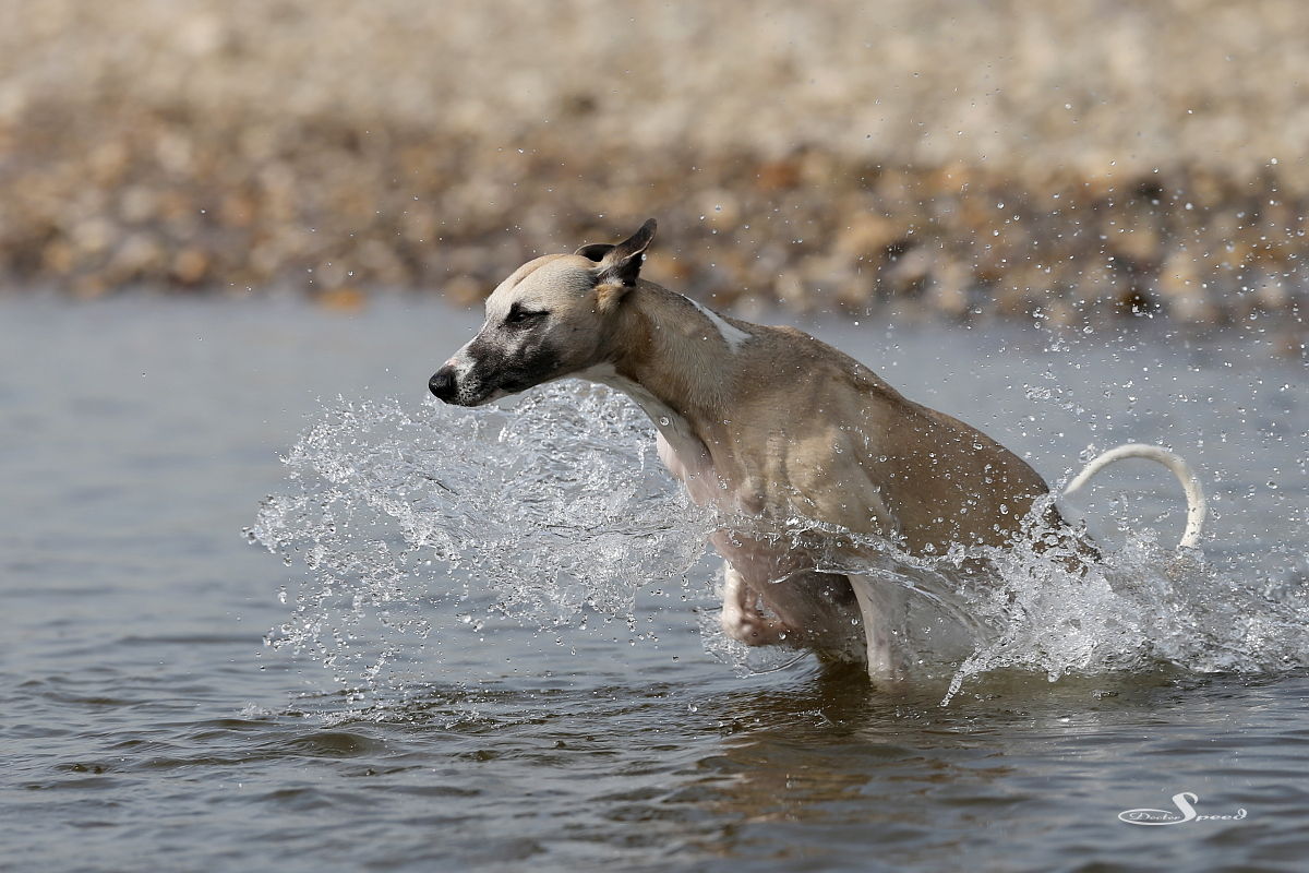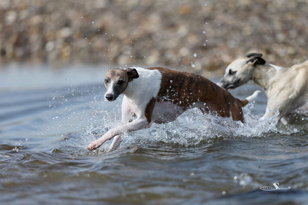 Im letzten Frühling habe ich mich ja bereits über das gespaltene, wenn nicht paradoxe Verhältnis meiner Whippets zum Zustand Nass geäußert. Nass ist nach wie vor nicht gleich nass. Nass ist man nach wie vor selbstbestimmt und freiwillig. Niemals lässt man sich nass aufzwingen. Von oben schon gar nicht.
