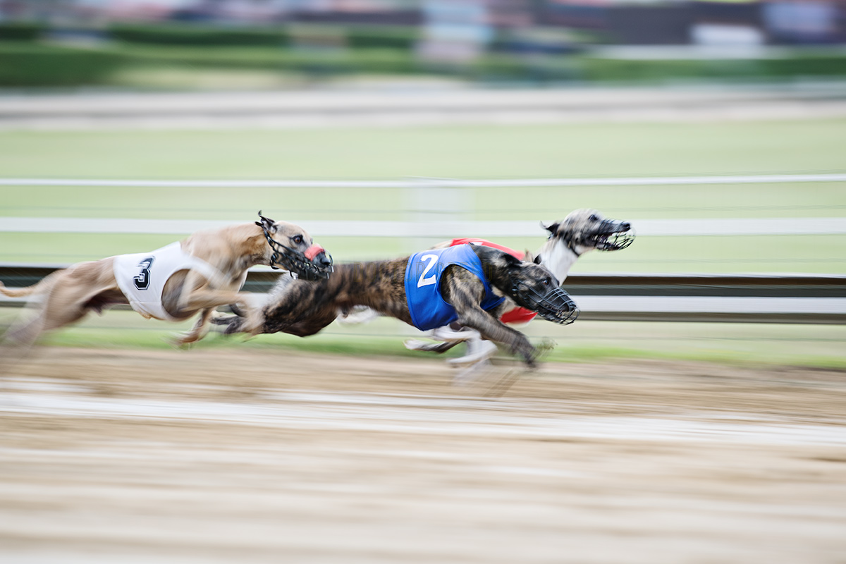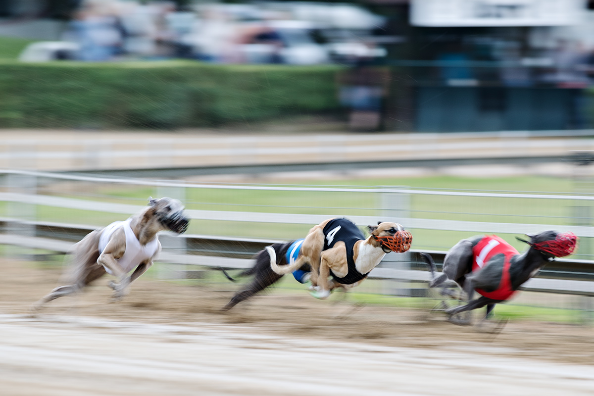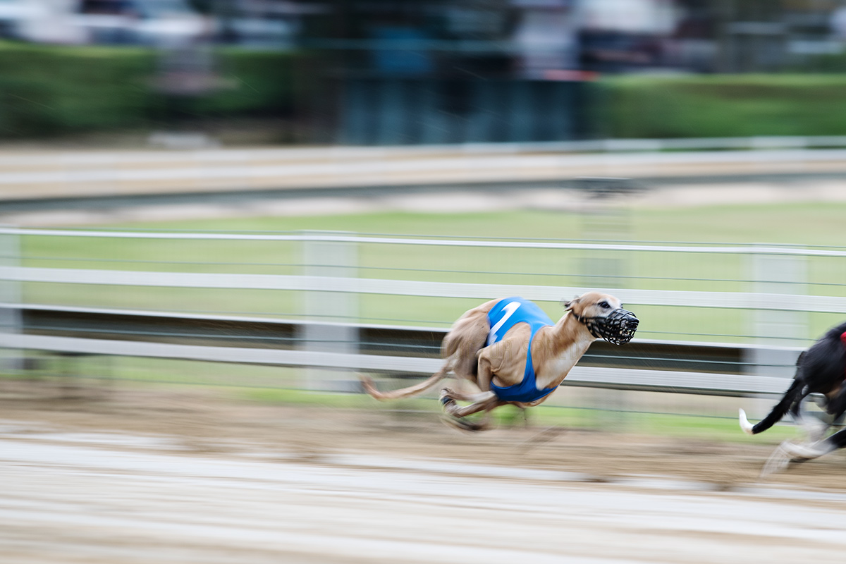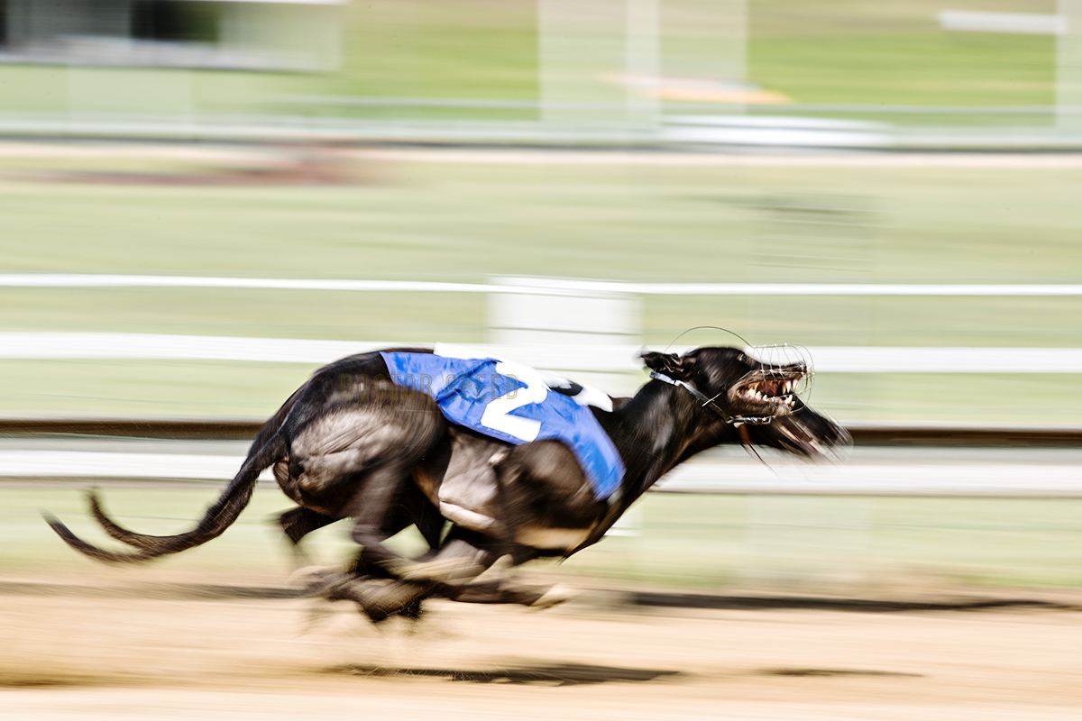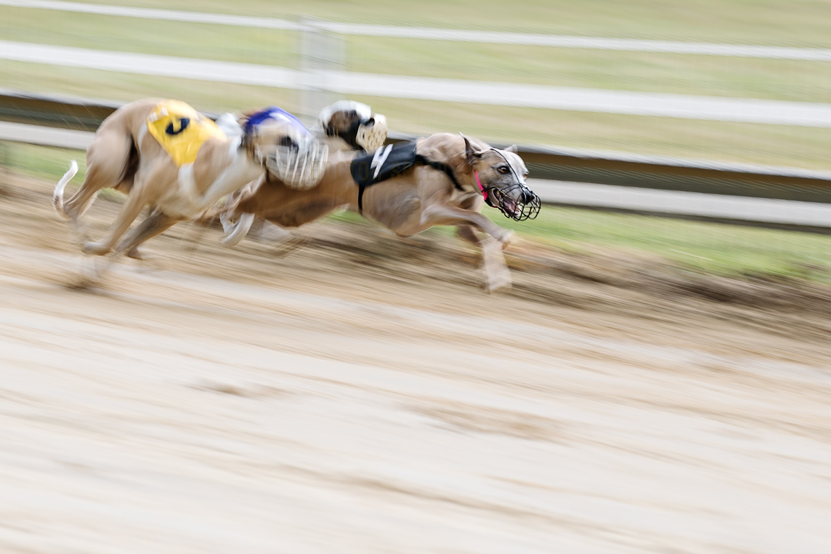 Würde ich an der Rennbahn noch frontale Schüsse machen – naja, hin und wieder aber immer seltener – nähme ich natürlich auf jeden Fall die 200er oder die 300er Festbrennweite. Aber an einigen Stellen der Gelsenkirchener Bahn sind sogar 200 Millimeter zu viel, um Gruppen zu erwischen. Einzelne Hunde immer, aber für ganze Gruppen ist es oversized. Deshalb ist das Zoom eine richtig gute Wahl für diesen Einsatzzweck.
