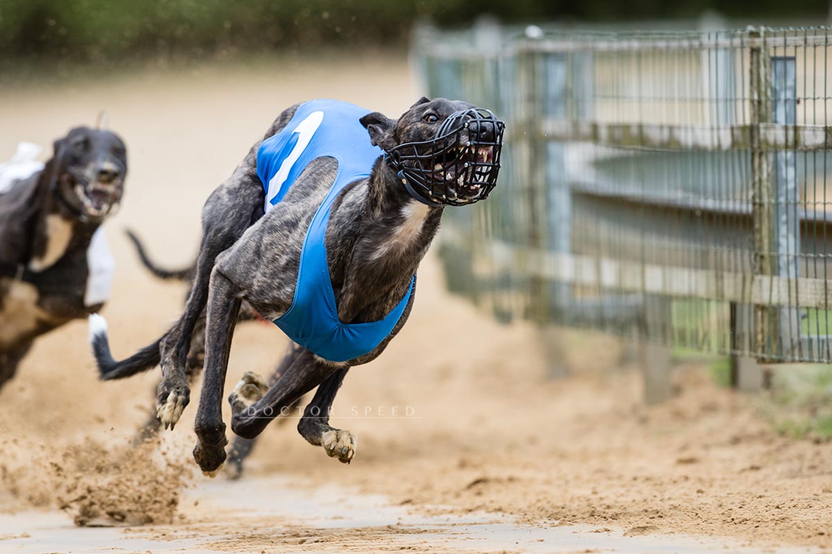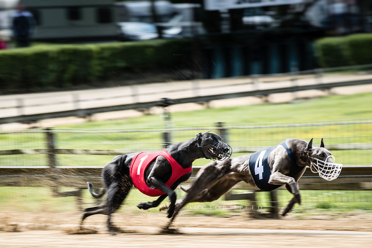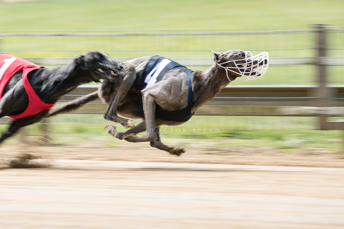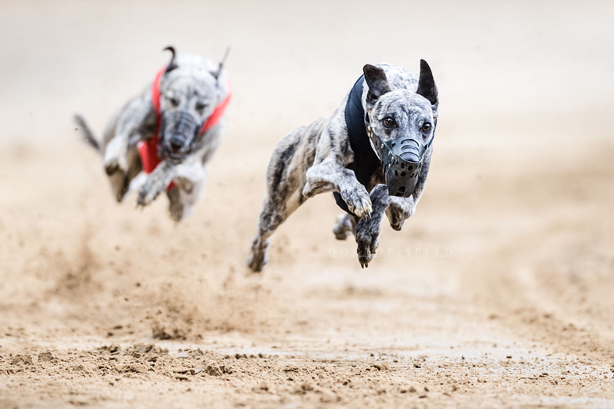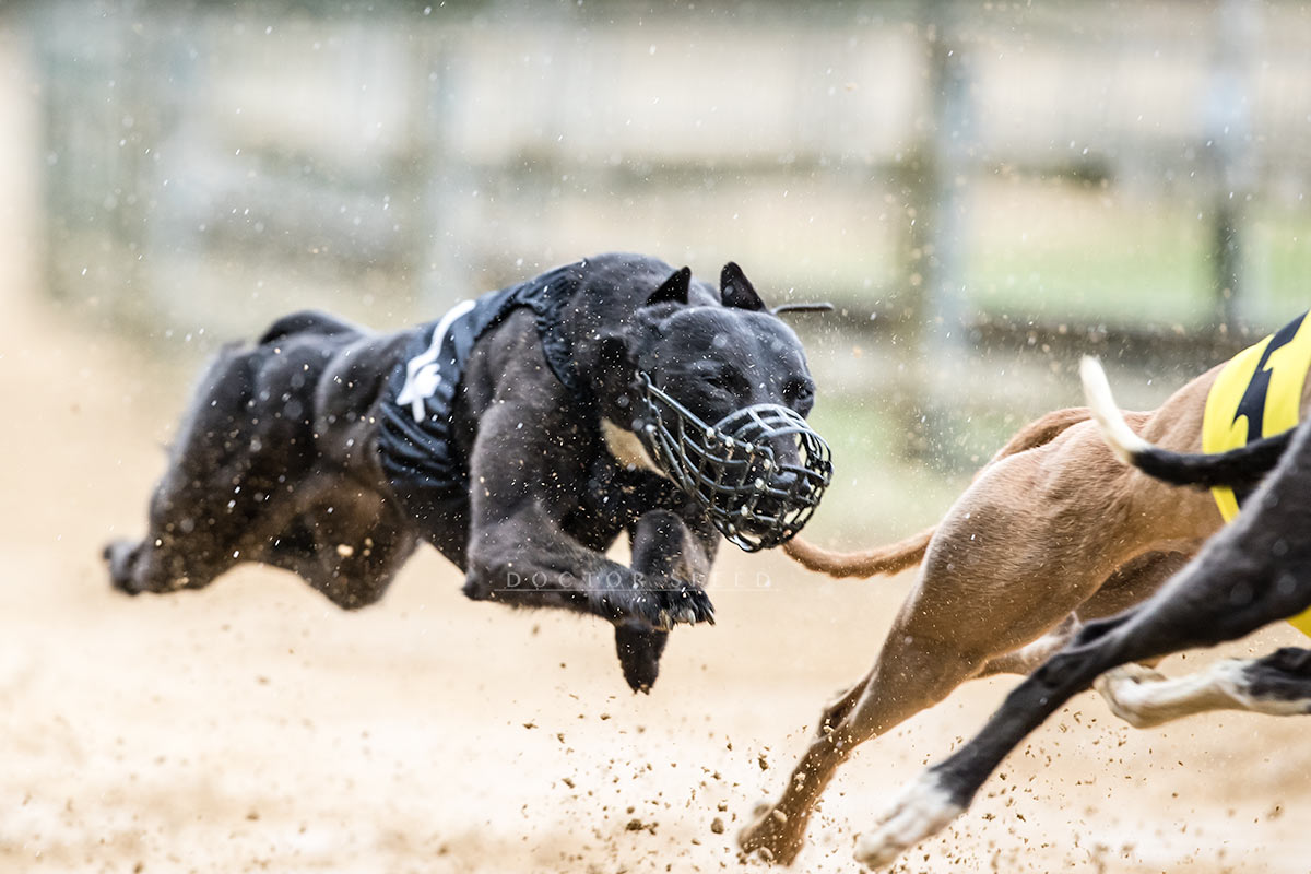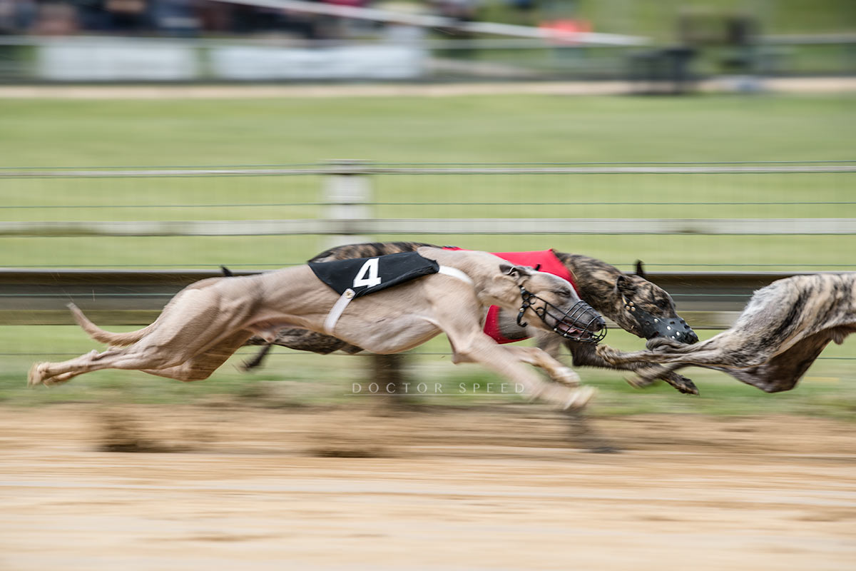Schicke ich Mono ins Coursingtraining, dann bin ich in Sorge. Ich weiß, dass er das kann. Dennoch habe ich immer ein bisschen Angst um ihn. Das Seil, die Umlenkrollen? Aber er hat dort nur einen Laufpartner und viel Platz. Auf der Bahn laufen bei Titelrennen sechs Hunde im Vollspeed mit Körperkontakt. Da kann schonmal was schief gehen. Ich habe gesehen, wie eine Hündin im vollen Lauf mit einer Kralle in ihrem Maulkorb hängen blieb und sich überschlug wie ein Nascar nach einem Crash bei Tempo 300. Sie ist wieder aufgestanden, hat sich einmal geschüttelt und gut war’s. Gewissenhaft trainierte Whippet verpacken mehr, als man denken mag.
