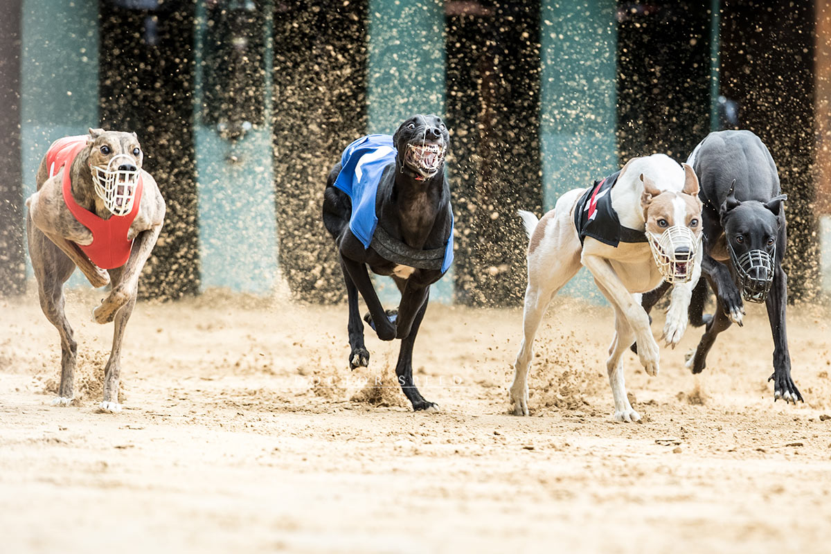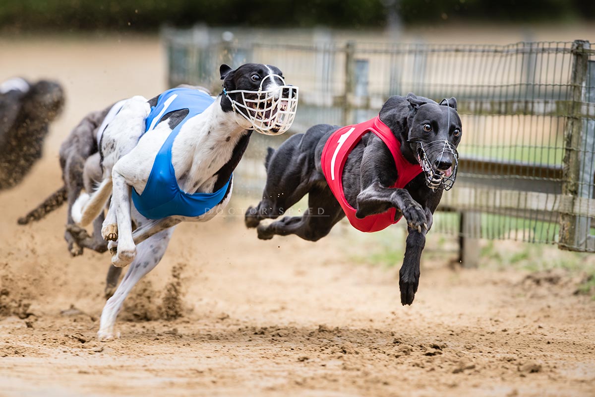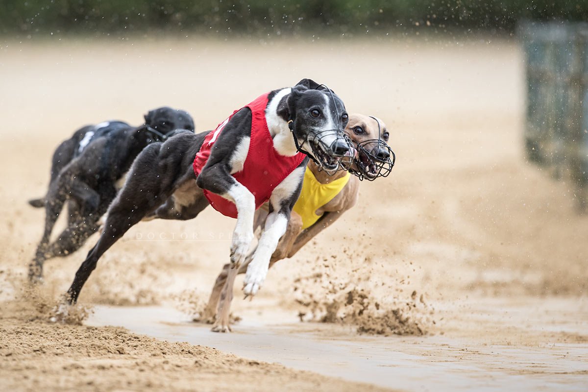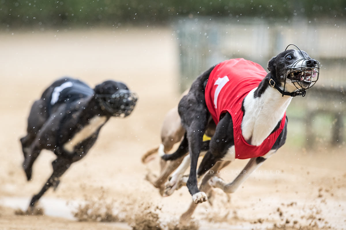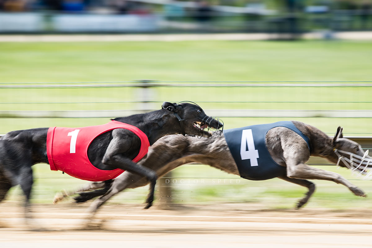 Schicke ich Mono ins Coursingtraining, dann bin ich in Sorge. Ich weiß, dass er das kann. Dennoch habe ich immer ein bisschen Angst um ihn. Das Seil, die Umlenkrollen? Aber er hat dort nur einen Laufpartner und viel Platz. Auf der Bahn laufen bei Titelrennen sechs Hunde im Vollspeed mit Körperkontakt. Da kann schonmal was schief gehen. Ich habe gesehen, wie eine Hündin im vollen Lauf mit einer Kralle in ihrem Maulkorb hängen blieb und sich überschlug wie ein Nascar nach einem Crash bei Tempo 300. Sie ist wieder aufgestanden, hat sich einmal geschüttelt und gut war’s. Gewissenhaft trainierte Whippet verpacken mehr, als man denken mag.