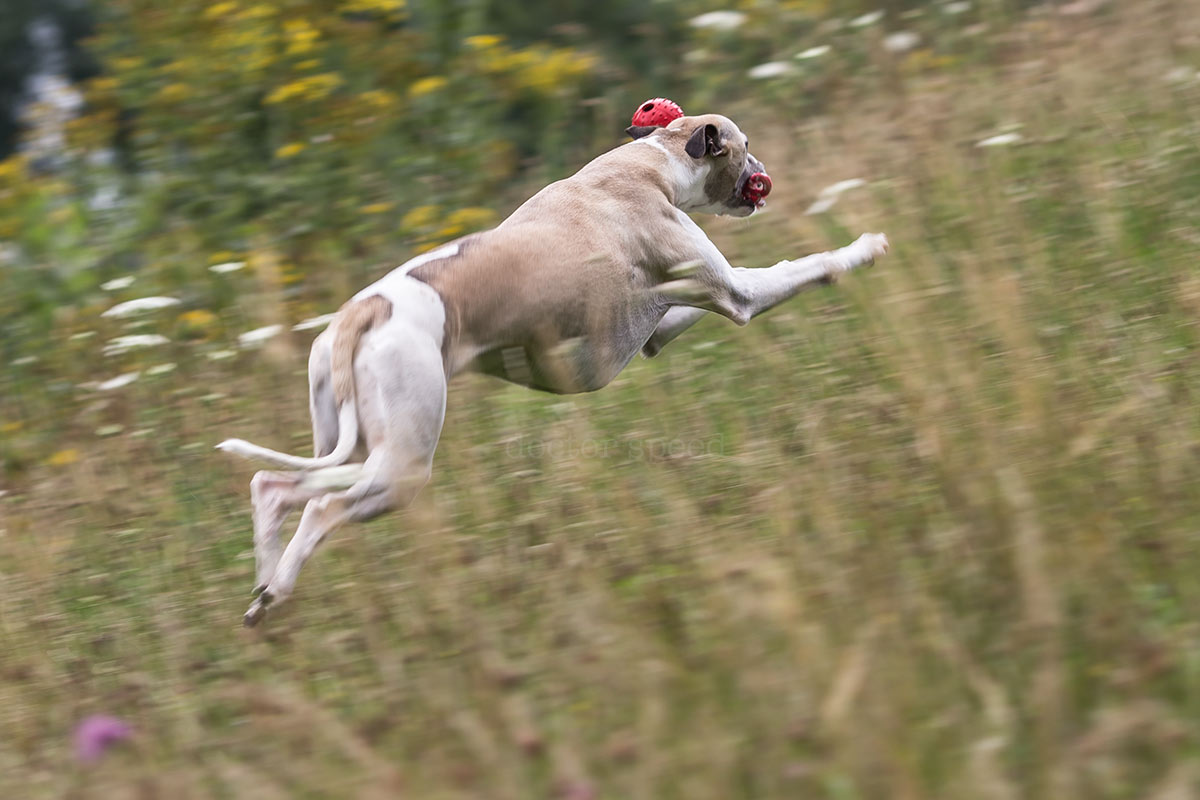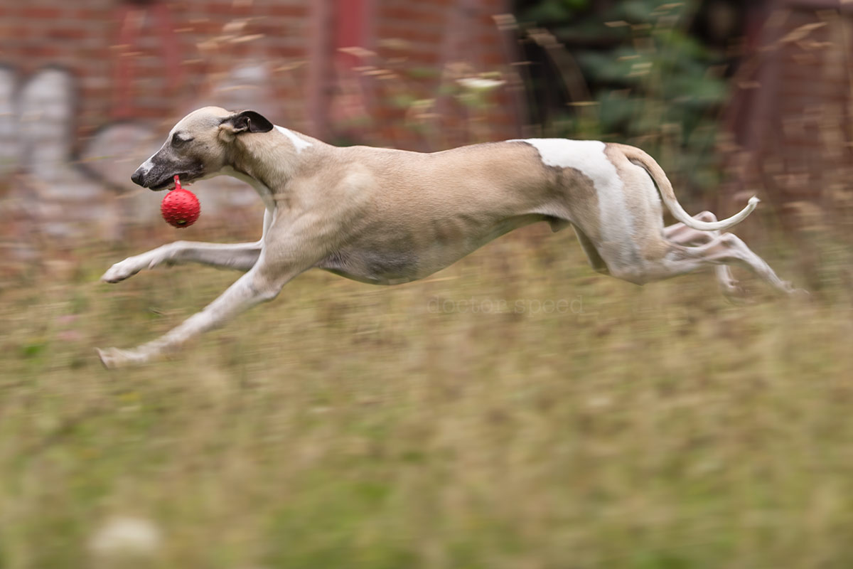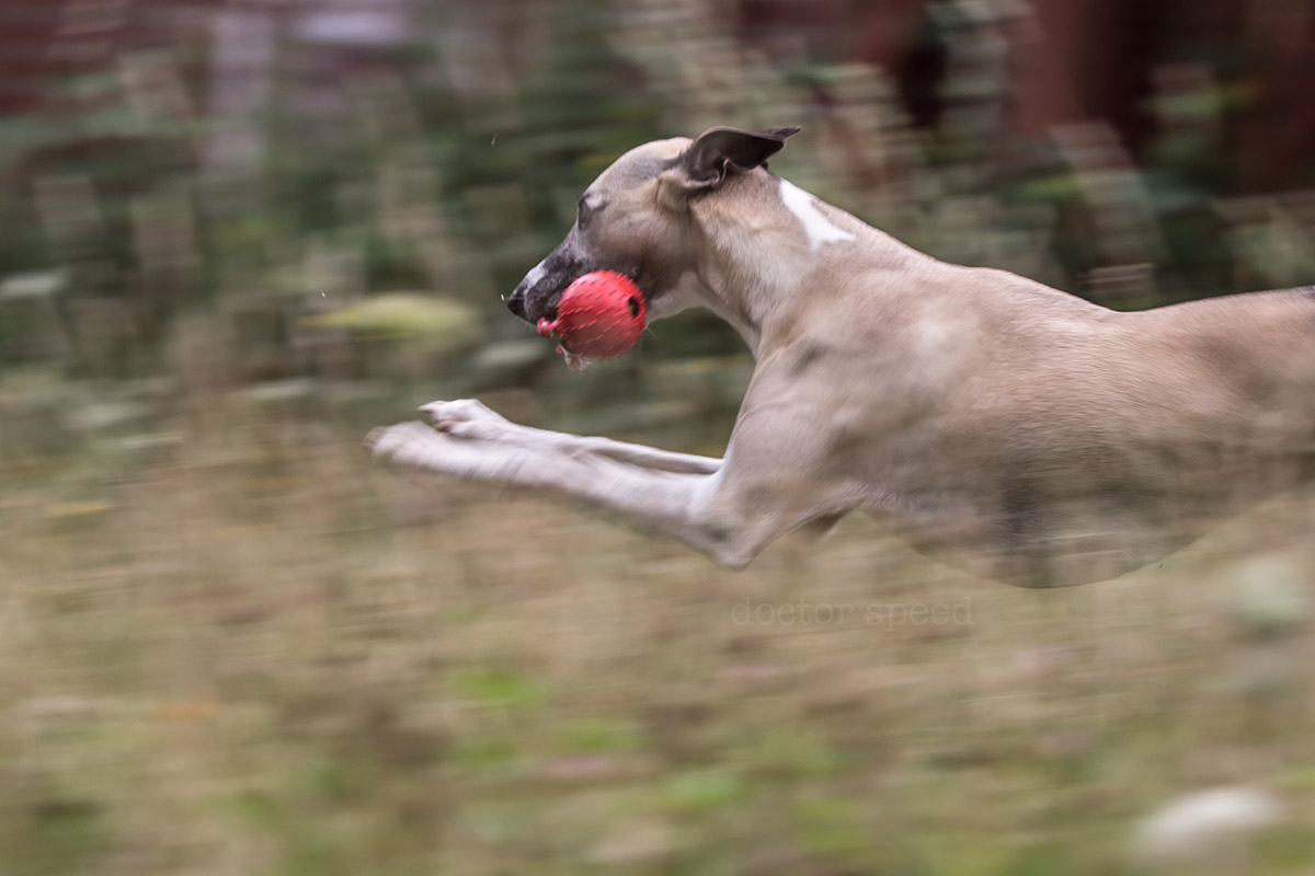Die Mitzieher habe ich mit der Canon 1D X und dem Canon EF 135mm 1:2,0L USM gemacht. Der rote Ball war natürlich sehr hilfreich für den Autofokus, ich hätte die Bilder aber trotzdem sehr gerne ohne den Ball gehabt. Doch ohne „Beute“ im Maul performt Mono leider auch keine filmreife Flitzattacke. Irgendwas ist immer!