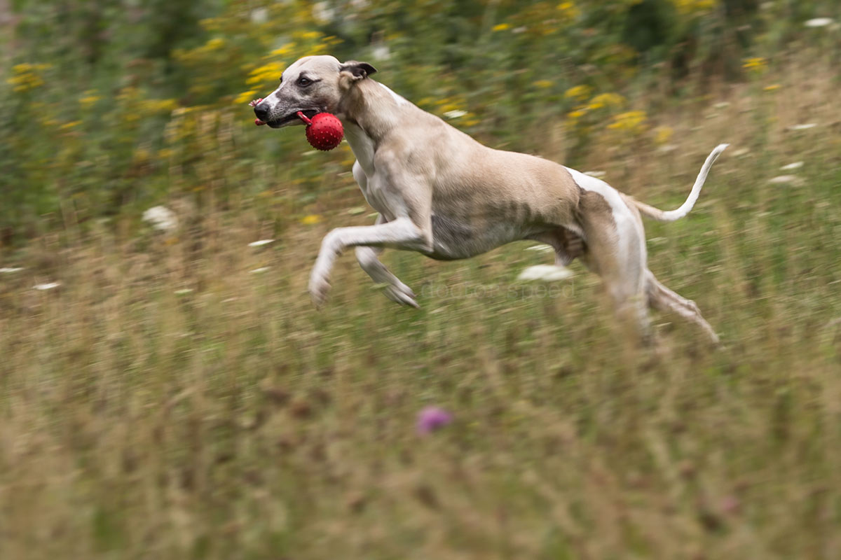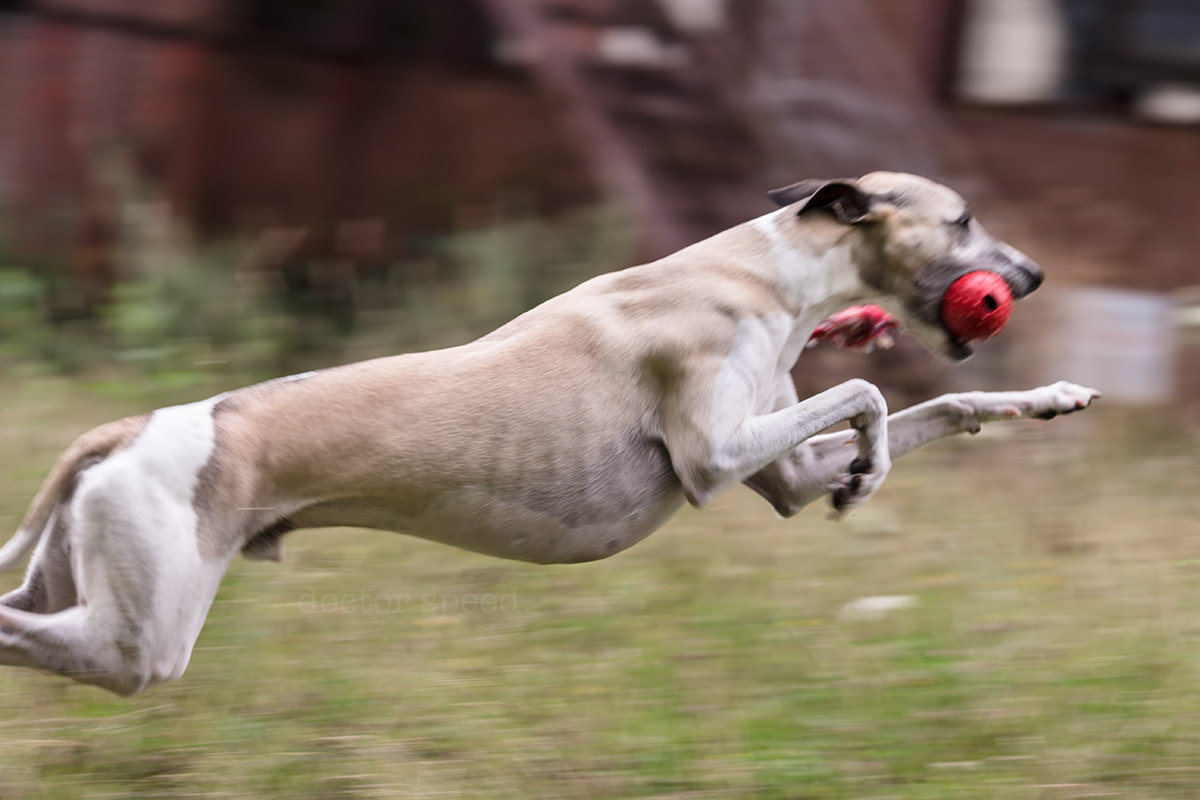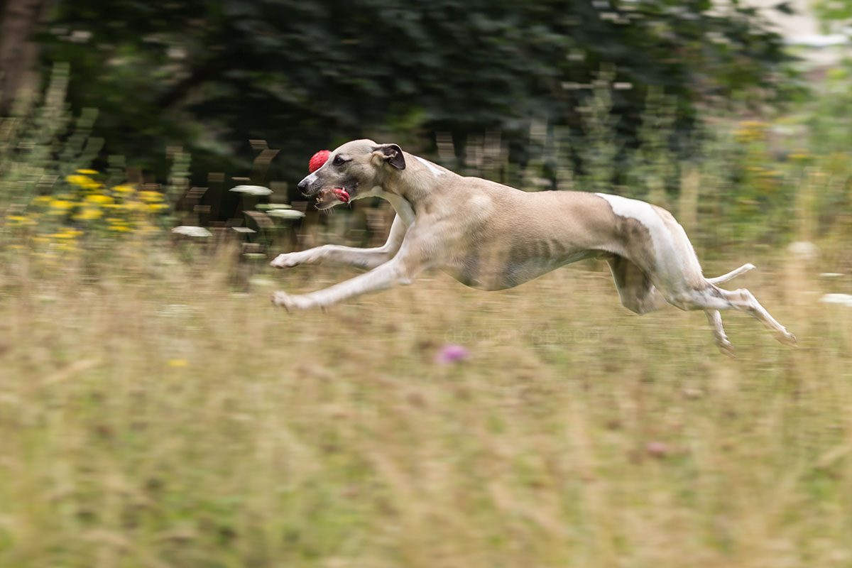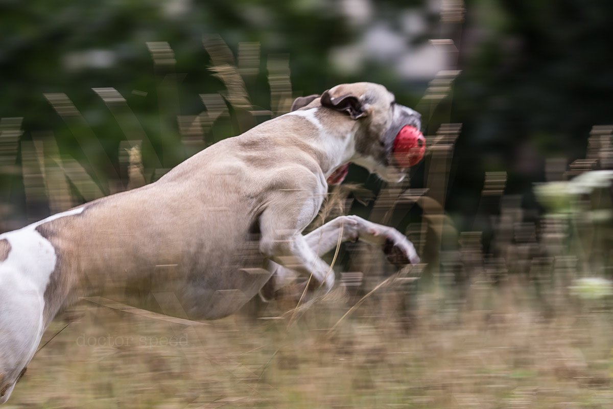 Die Mitzieher habe ich mit der Canon 1D X und dem Canon EF 135mm 1:2,0L USM gemacht. Der rote Ball war natürlich sehr hilfreich für den Autofokus, ich hätte die Bilder aber trotzdem sehr gerne ohne den Ball gehabt. Doch ohne „Beute“ im Maul performt Mono leider auch keine filmreife Flitzattacke. Irgendwas ist immer!