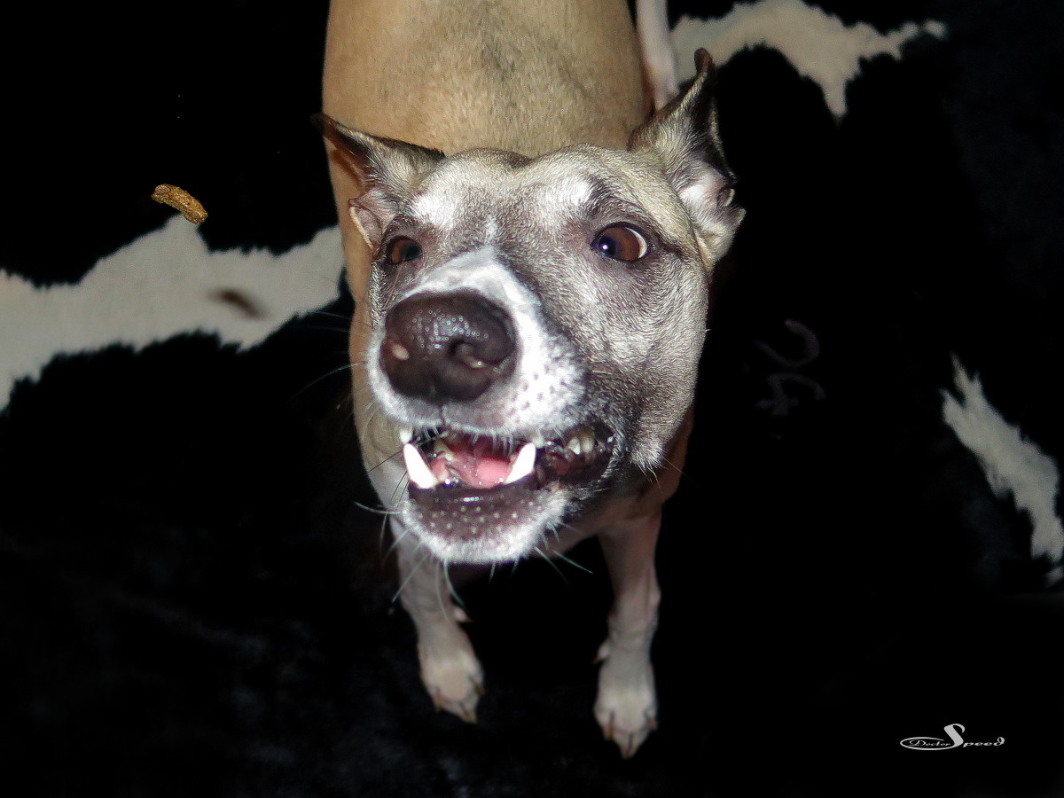 Mono und Mr.Clark sind verfressen und spielfreudig genug, um jeden Quatsch mitzumachen. Futterwerfen ist sowieso immer super. Deshalb lässt sich die Bespaßung des Hundevolks prima mit meiner Testerei kombinieren. Es gilt schließlich nach wie vor eindrücklich zu beweisen, dass meine aktuelle Testkamera ebenso mambaschnell zupacken kann, wie Mr.Clark.