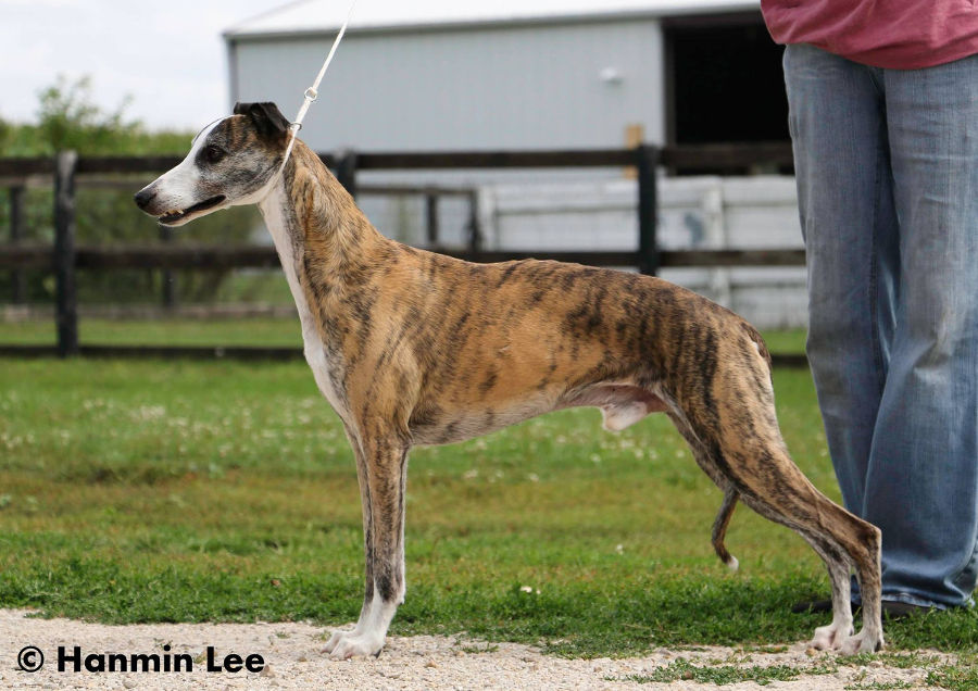 Plumcreek New York New York, genannt Dalles, 9 Jahre alt. Der Kennel Plumcreek exisitiert seit 1966 und kann auf eine lange Reihe von erfolgreichen Whippets blicken – im Showring wie auch im Sport.