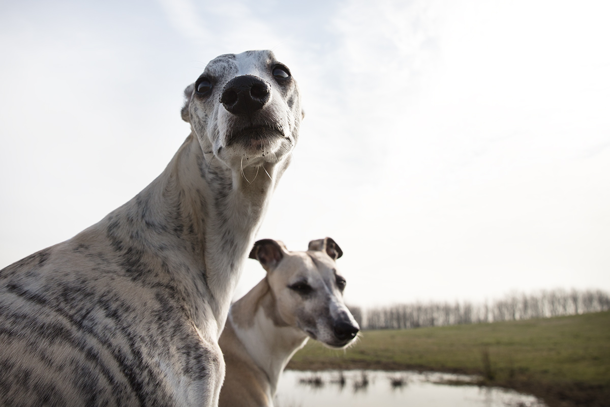 Ja, auch wir dürfen hin und wieder mal albern sein. Gerade weil es endlich Frühling wird und wir nicht mehr hektisch geduckt durch Regen und Kälte huschen müssen. Es ist herrlich, einfach nur herumzubummeln, mal hier mal dort stehen zu bleiben, ohne dass zwei Whippets anfangen zu bibbern. Dieses „los nun bewegt euch, dann werdet ihr auch warm“ ist wohl jetzt endlich vorbei. Schön!