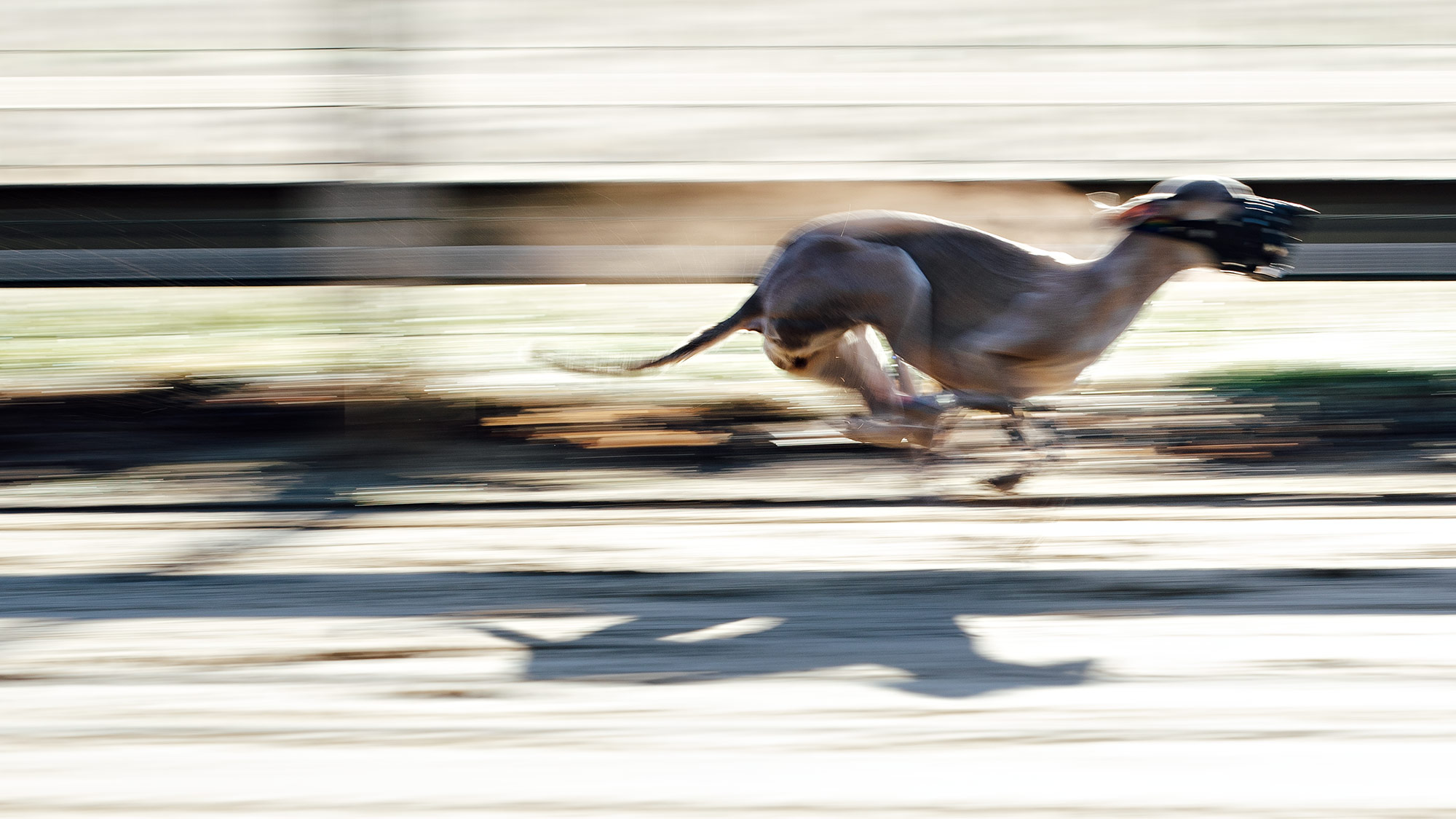 Trotz dieses natürlich unauflösbaren Lichtdilemmas war der Tag für mich besonders fruchtbar. Ich war in Begleitung eines Fotografiestudenten der Folkwanghochschule. Für ihn war alles neu: Windhunde, Rennen, das enorme Tempo. Und für mich galt es, meine Gedanken zu sortieren und mir klar zu werden, wie ich mir meine Fotos vorstelle und wie ich meine Pläne umsetzten will. Als wir über die Fotografie an sich vor uns hin diskutierten, macht es in meinem Kopf klick: Keine Kompromisse mehr. Vielen Dank für das Brainstorming.