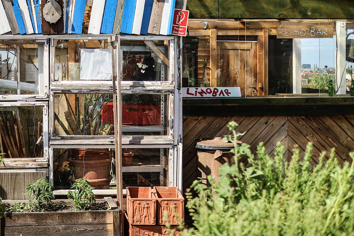 Den RTW brauchten wir zum Glück nicht. Aber einen Fahrstuhl, der uns auf das Dach eines Parkhauses verfrachtete. Und wieder ganz viel Grün statt grau und rottig! Der Klunkerkranich hat wirklich überrascht. Der erste und einzige Gemeinschaftsdachgarten in Berlin bietet nicht nur eine umwerfende Aussicht auf Berlin, sondern auch ganz viel Anziehungskraft. Sitzen, Quatschen, Sonne Tanken – das Bloggergrüppchen wollte gar nicht mehr runter vom Dach. Der Sand, den der Wind uns aus dem Sandkasten für Kleinkinder zwischen die Zähne gewehte, hat uns nur wenig gestört.