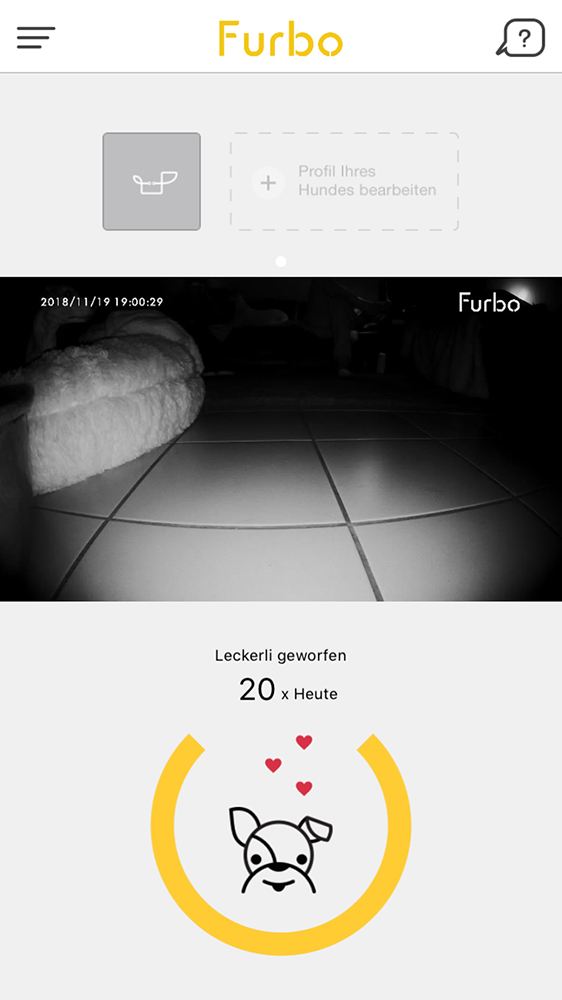 Der 160 Grad Winkel der Kamera ist natürlich interessant. Sie kann einen sehr großen Raum fast komplett erfassen. Aber wie gehe ich mit den Informationen um, die Furbo mir liefert, wenn ich unterwegs bin? Stehe ich im Stau auf der A40 und bekomme einen Bell-Alarm, dann kann ich ihn zwar zur Kenntnis nehmen, aber nicht eingreifen. Wenn ich am Abend bei meinem Lieblingsitaliener sitze und über die App sehe, dass mein süßer Fiffi mal wieder die Möbel auffrisst, bleibt mir nichts anderes übrig, als genervt mit den Augen zu rollen.