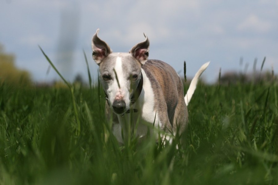Natürlich hat es etwas für sich, wenn die Whippets rein gar nicht mehr sehen können, was um sie herum passiert, aber flitzen können sie auch nicht mehr. Immer nur die Wege rauf und runter brettern ist auf die Dauer langweilig. Quer laufen geht überhaupt nicht mehr. Die Jungs können sich höchstens hüpfend fortgewegen, was Mono eigentlich zu gute kommt, den echten Spaß aber auch nicht bringt.