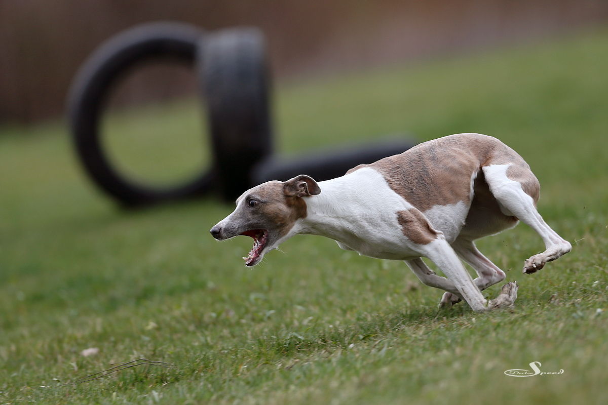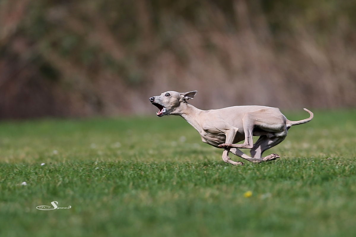 Seit dem ersten Bahntraining konnte ich mich schon etwas intensiver mit der Canon EOS-1D X auseinandersetzen und musste feststellen, dass eine für mich lebenswichtige Funktion fast beängstigend perfekt ihren Dienst tut. Die Fokusnachführung dieser Kamera grenzt an Voodoo. Der Autofokus krallt sich an den auswählten Punkt fest wie ein wütender Krake. Weder Büsche, Pylonen, Autoreifen noch menschliche Beine können ihn aus dem Konzept bringen, selbst wenn sie fast formatfüllend mitten im Fokusfeld erscheinen. An der Rennbahn ist das nicht unbedingt wichtig, aber beim Coursing und im Freilauf unbezahlbar. Aber darüber, den Autofokus an sich und die Optionen, die die 1D X dazu bietet – wie bereits angekündigt – später mehr.