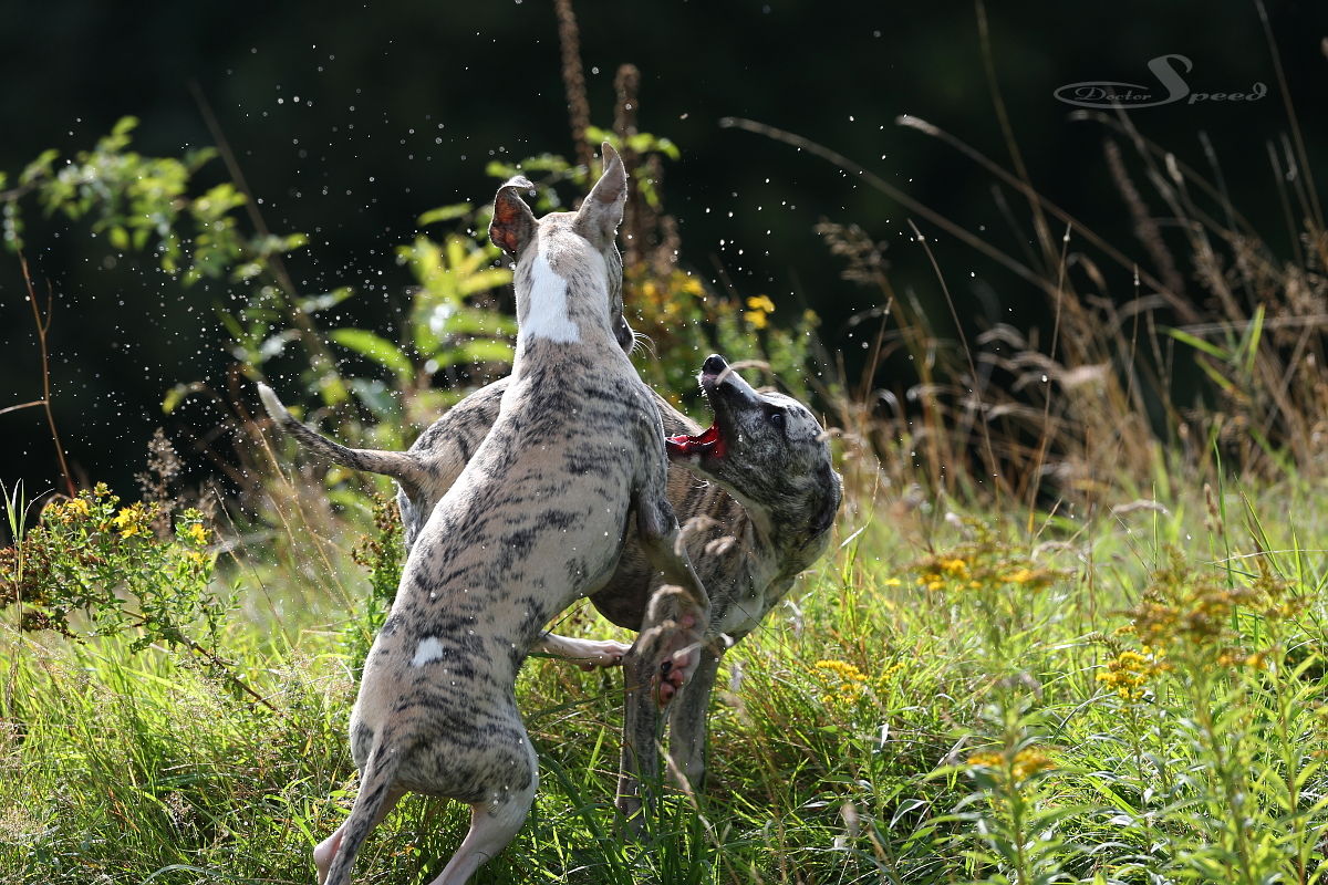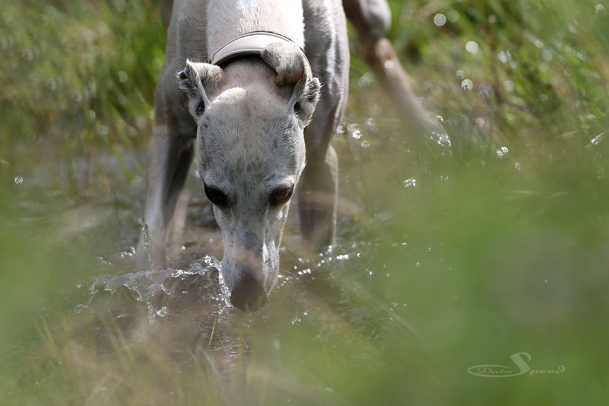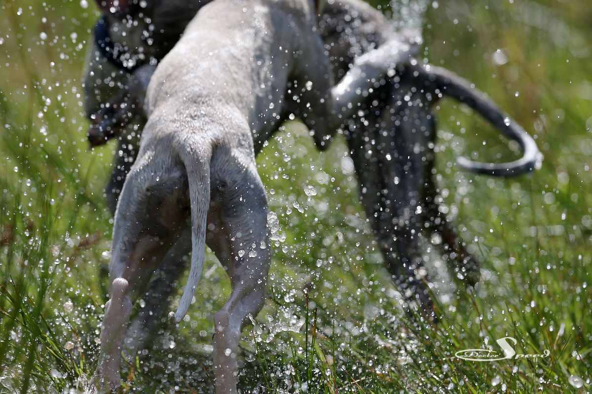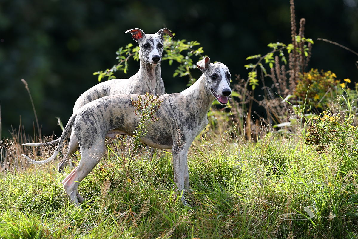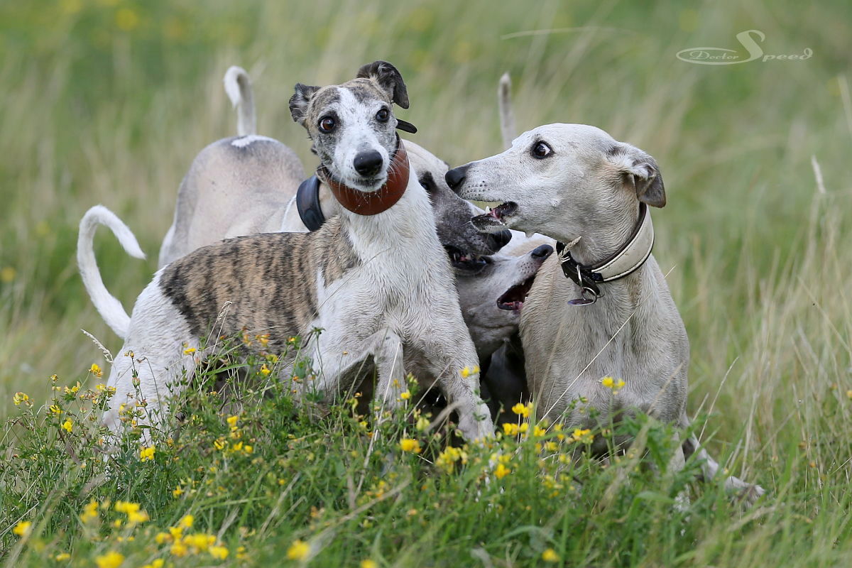 Einzig das nach wie vor sehr hoch stehende Gras stört. Allerdings nur mich beim Fotografieren. Die Hunde lieben es durch die „Savanne“ zu rasen. Hang ‚rauf, Hang ‚runter. Dazu muss man wohl auch nicht viel Worte machen. Sie genügen sich selbst. Sie brauchen weder Ball noch Frisby um in die Gänge zu kommen. Sie laufen aus Spaß und geben alles. Und ich bin nach wie vor fasziniert, wenn eine Gruppe Whippets richtig Gas gibt.