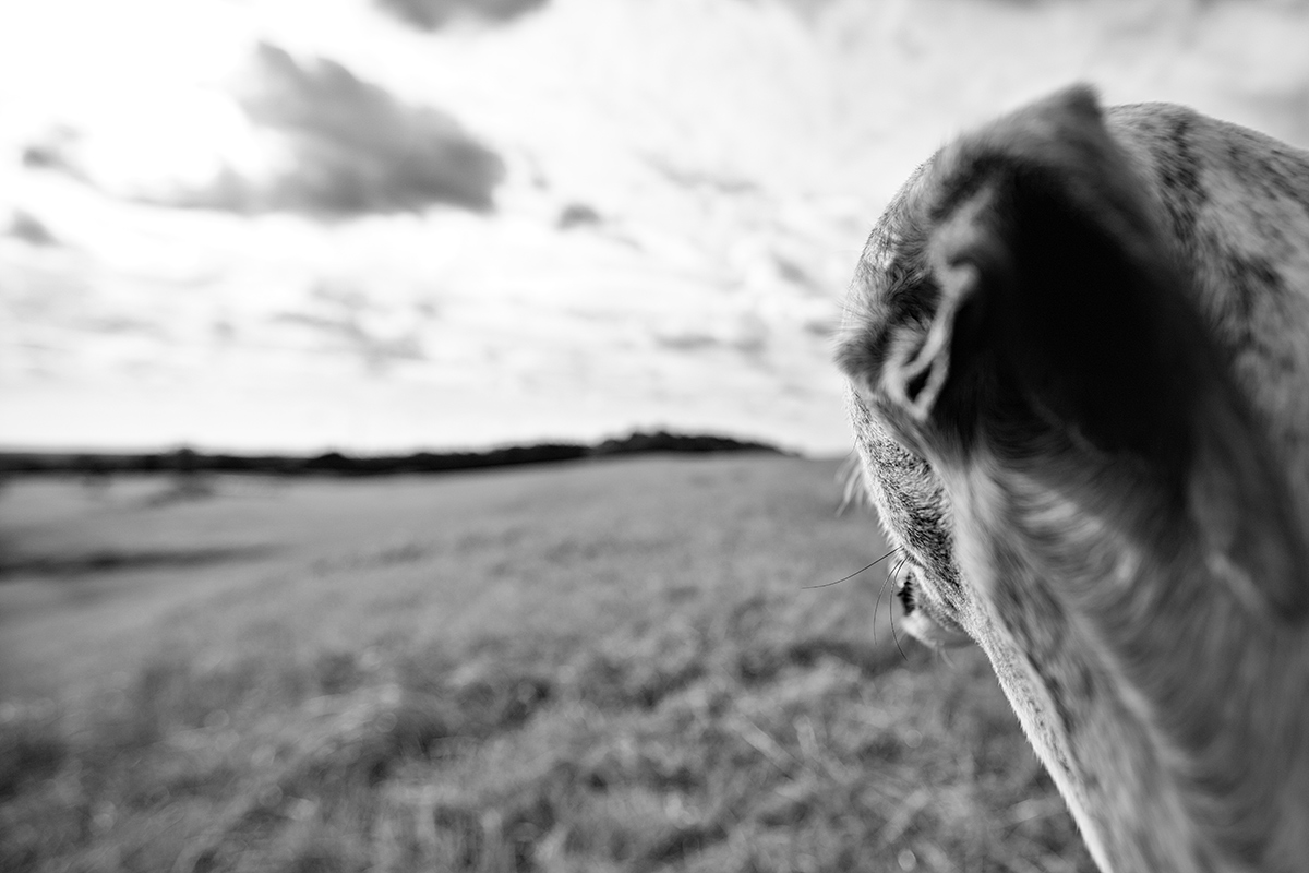 Denn dort denke ich nach. Ich lasse mir den Wind um die Nase wehen, freue mich wie ein Kleinkind über die Flitzattacken meiner Hunde, freue mich, dass sie sich freuen. Manchmal sitzen wir ganz still oben auf dem höchsten Punkt. Mono und Danny könnten zu jeder Zeit stöbern gehen, wenn sie wollten. Aber sie tun es nicht. Meistens setzen sie sich ganz nahe neben mich und spähen den Hang hinunter. Das sind Minuten der Ruhe und Vertrautheit, die ich sehr genieße.