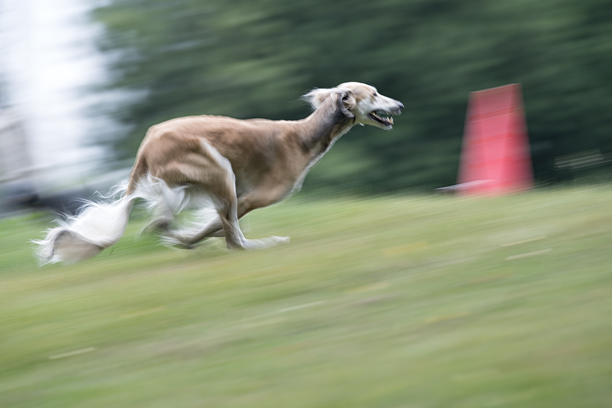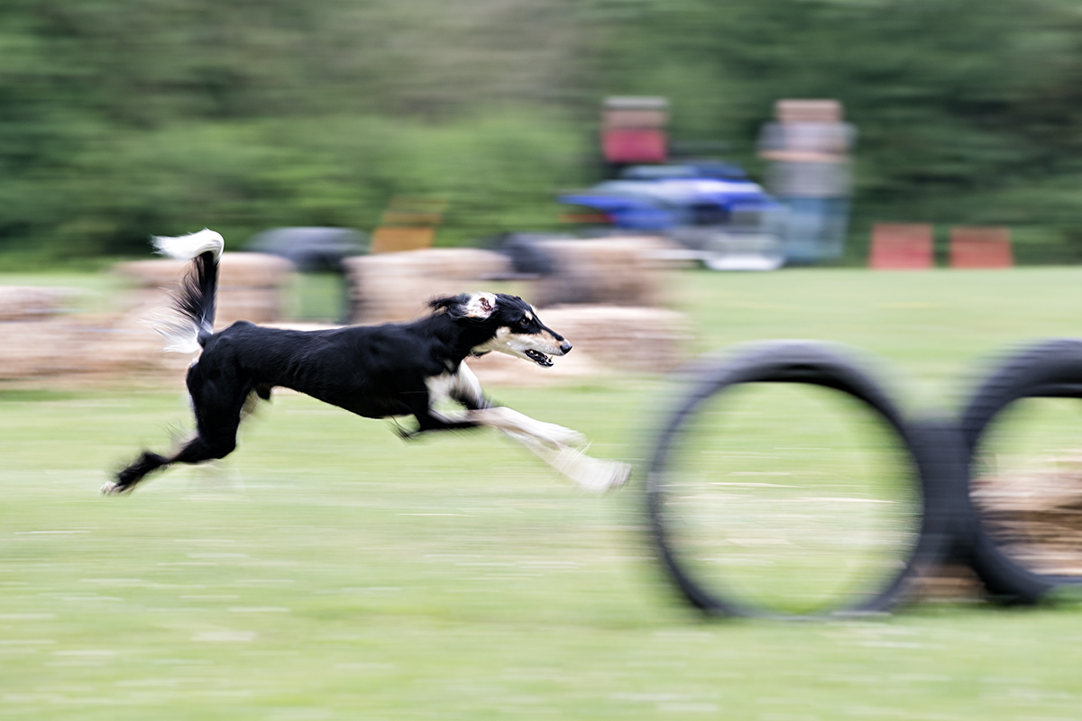 Saluki auf dem Coursing Parcour , 1/60 sek., ISO 100, f/9, alle hier gezeigten Fotos habe ich am letzten Sonntag mit der Canon EOS 1D X Mark II und dem Canon EF 70-200mm 1:2,8L IS II USM gemacht.