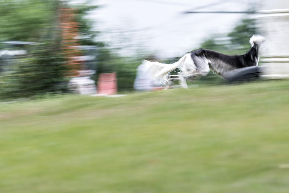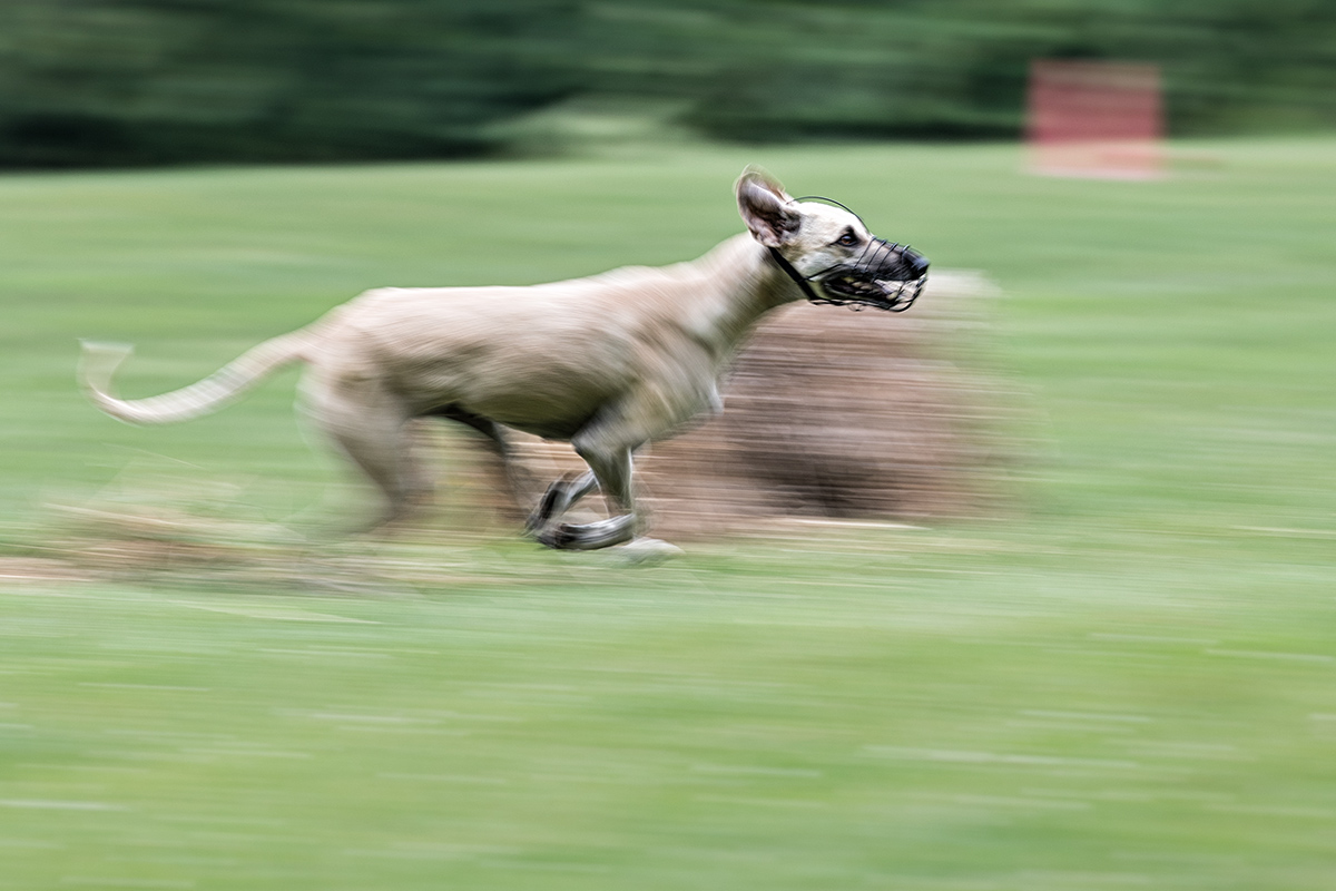 Doch wer sagt mir denn, dass unbedingt der Kopf scharf sein muss? Natürlich sieht das cool aus und wird allgemein gerne gesehen. Ein knackenscharfer Ausdruck in den Augen des Hundes während er mit 50 km/h über die Bahn donnert, ist ein genialer Kontrast zu einem wild wirbelnden Körper.