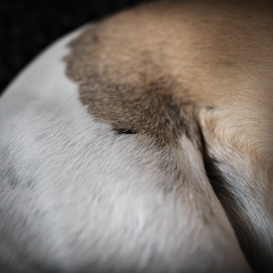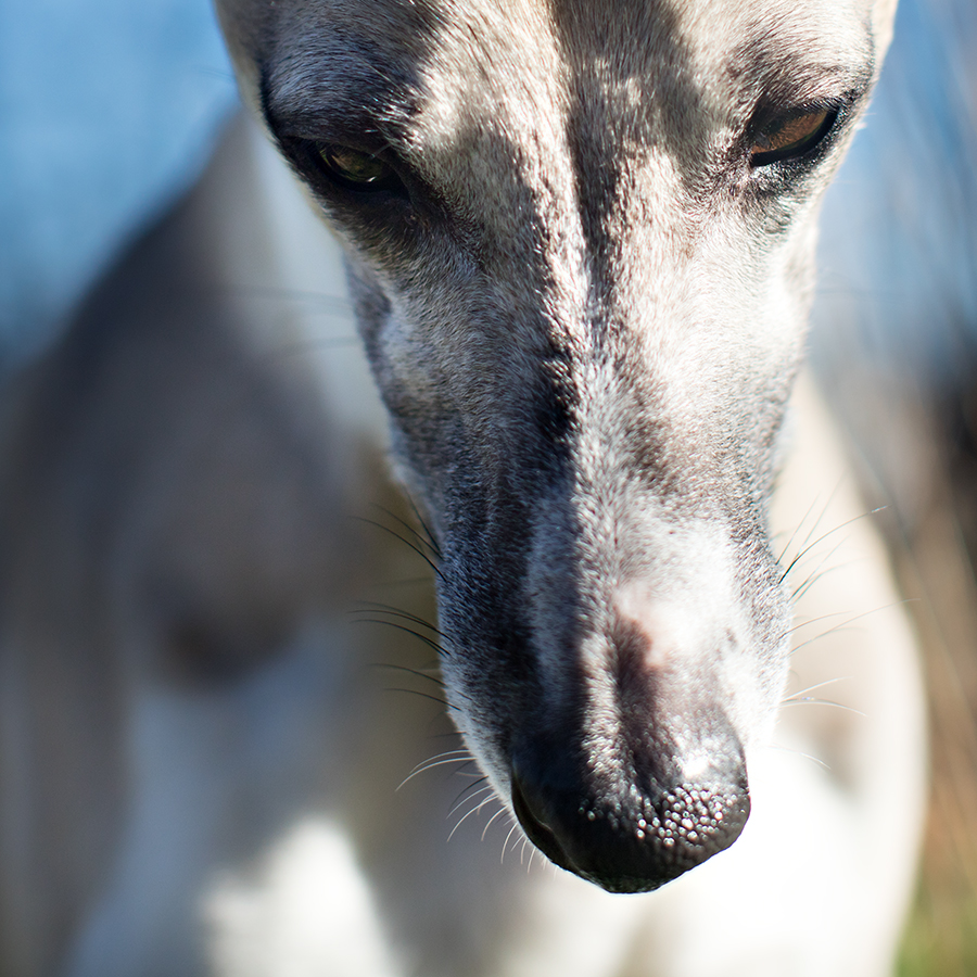 So gut sichtbar sind die Kerben in Monos Pelle allerdings nur, weil unter seinem sandfarbenen und weißen Fell eine an den meisten Stellen sehr dunkle, stark pigmentierte Haut schlummert. Ich habe schon viele helle Whippets gesehen, die Scarface alle Ehre machen könnten. Das sind meistens diejenigen, die viel Freilauf haben. Natürlich gibt es solche, die Narben von mehr oder weniger schweren Bisswunden haben. Letztere sehe ich aber eher selten.