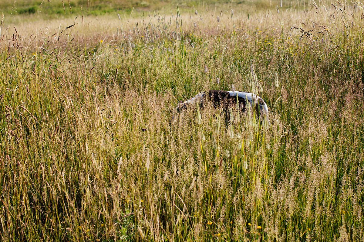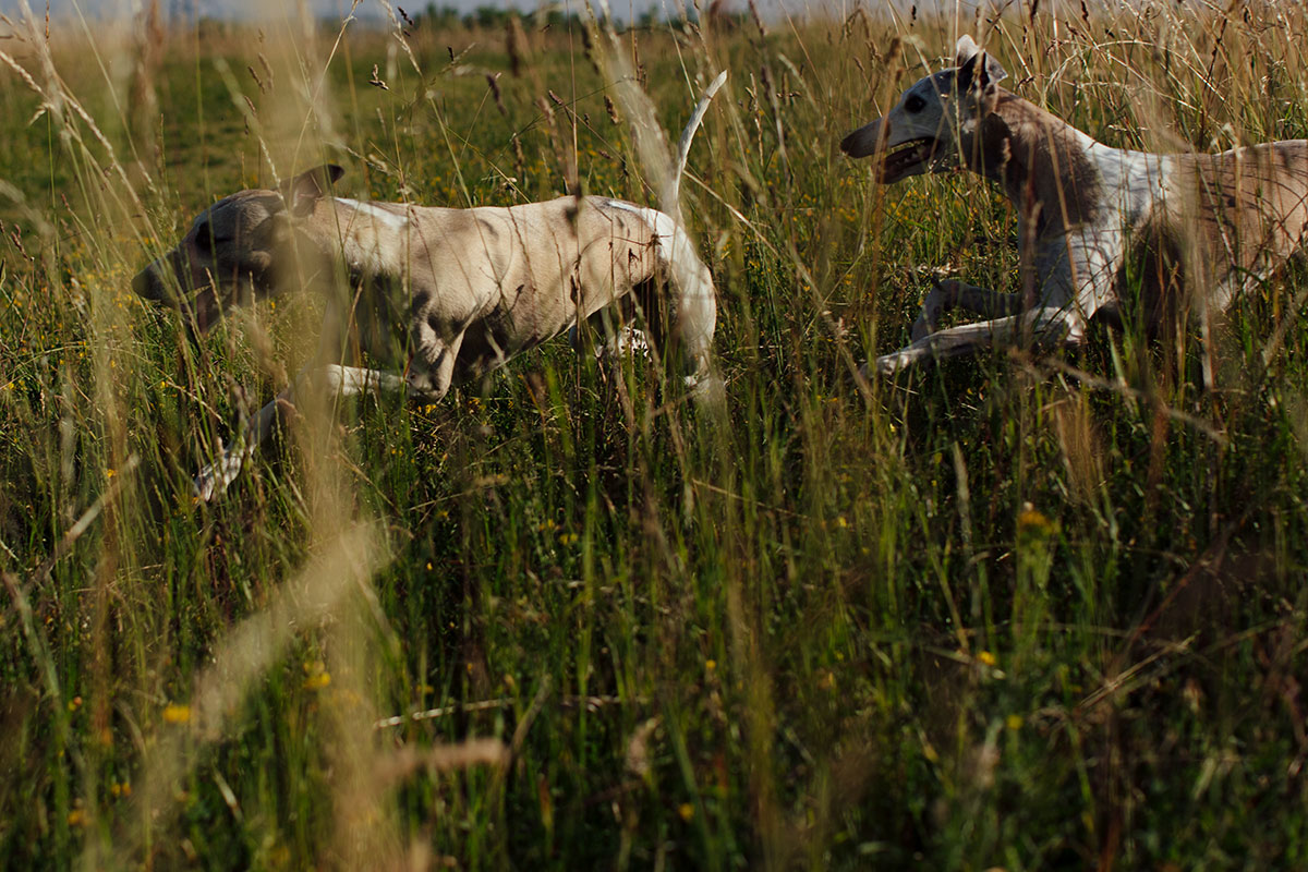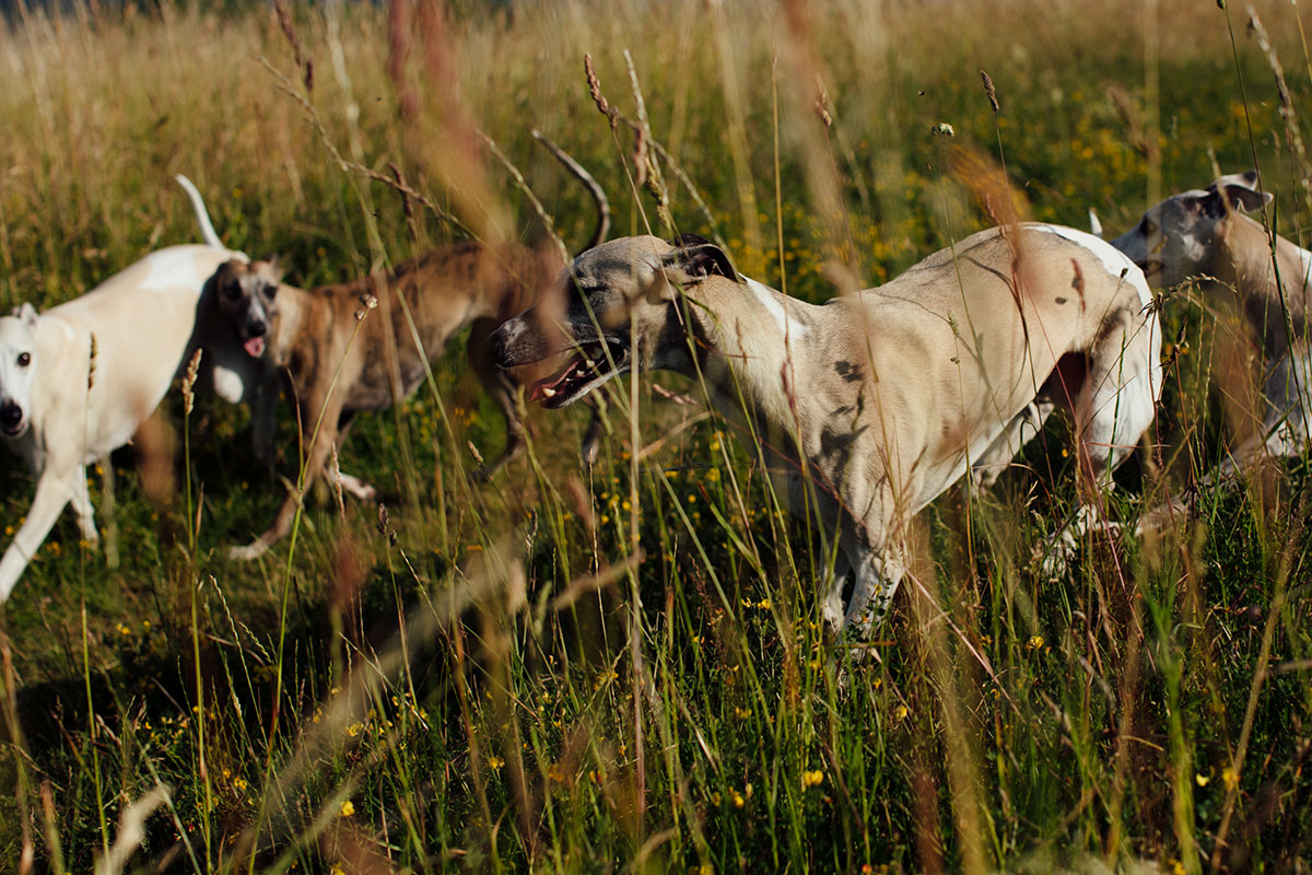 Am frühen Morgen ist es noch kühl genug. 17 Grad um 7:30 Uhr gehen gerade noch. Mono, Danny und Lianes Weiberrudel lieben die schattigen Wege, die sich die Halde hinauf winden. Dort können sie sich richtig auspowern. Oben auf den großen Wiesen gibt es keinen Schatten. Dort wird es sehr schnell sehr warm. Um 9:30 ist Schluss. Ab nach Hause, Futtern und Schlafen.