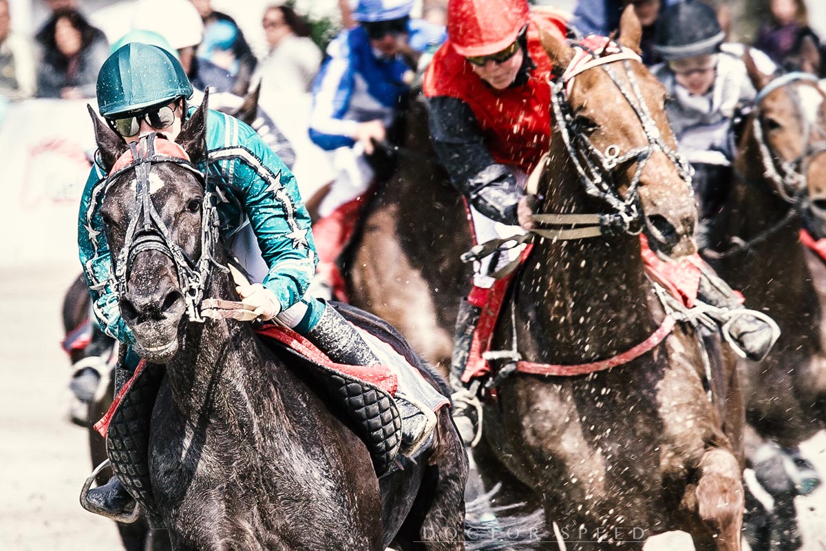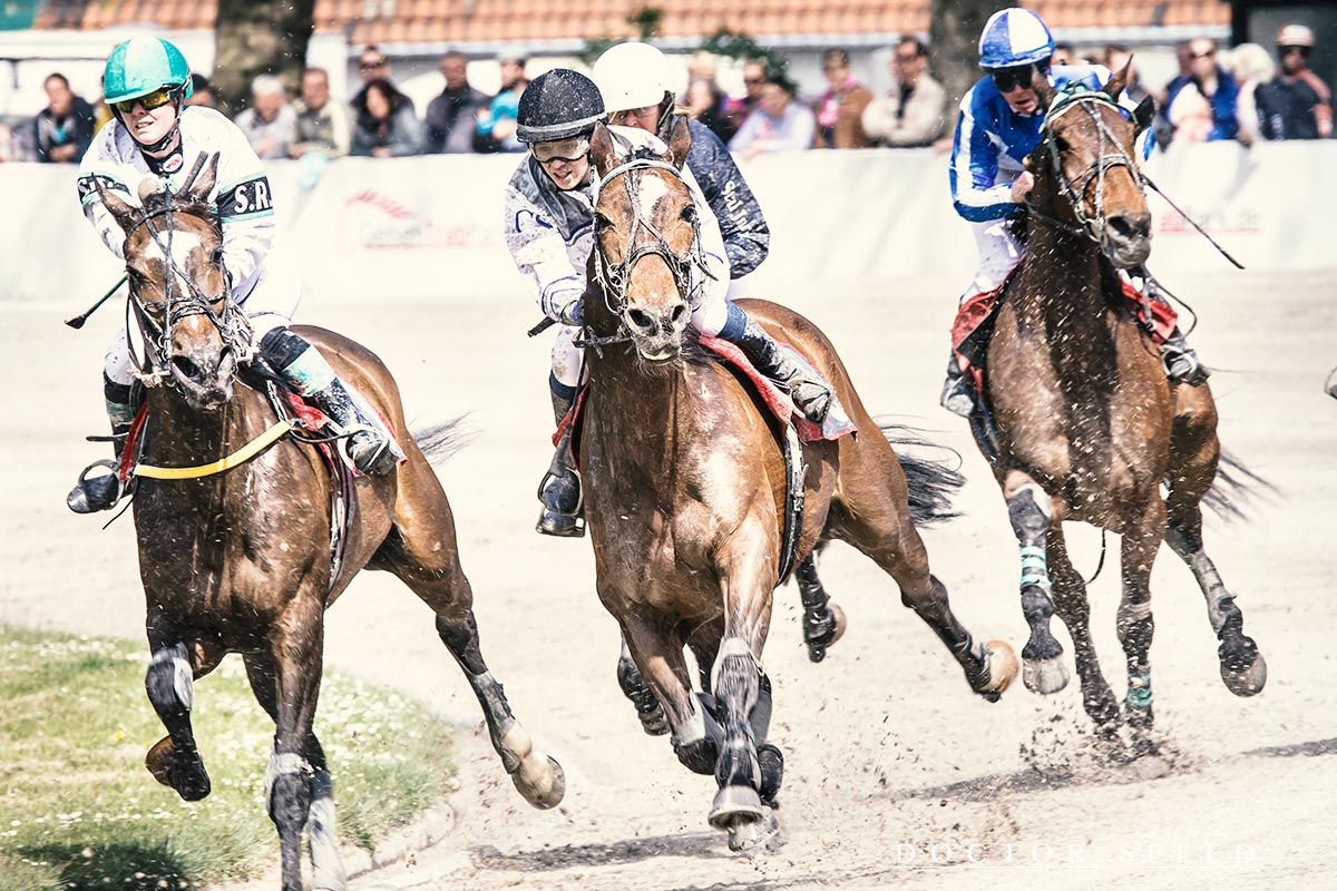 Wer gerne die Lichtstärke des 300ers hätte, aber noch 100 Millimeter mehr, der müsste knapp 10.000 Euro ausgeben und hätte 3,8 Kilo unter dem Arm. Das schlägt nicht nur einen tiefen Krater in den Kontoauszug, sondern zwingt dem mobilen Menschen auch ein Stativ auf, das er wohlmöglich gar nicht mag. Genau deshalb ist das Canon EF 400mm 1:4,0 DO IS II USM sehr interessant. Es lässt zwar weniger Licht durch, wiegt aber nur 2,1 Kilo und kostet rund die Hälfte. Ich konnte es zwei Mal an der Rennbahn testen, aber leider nicht beim Motorsport. Das ändert allerdings nichts, denn scharf ist scharf ob Hund oder Le Mans Prototyp oder Pferd. Die Trabrennbahn hier um die Ecke ist übrigens immer ein sehr ergiebiges Testgelände.