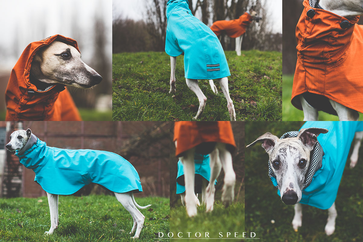 An fies kalten und nassen Tagen kommt noch ein Pulli drunter. Dann sind sie schön warm und trocken. Nebeneinander sehen sie dann aus, wie der Porsche 917 von Steve McQueen. Traumhunde, Traumauto. Passt doch!
