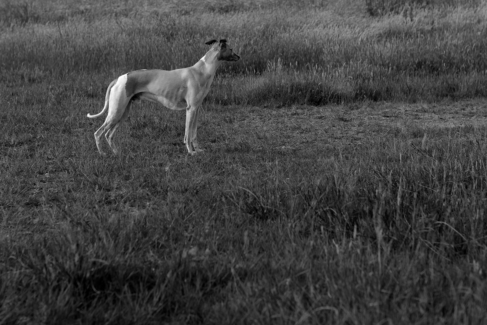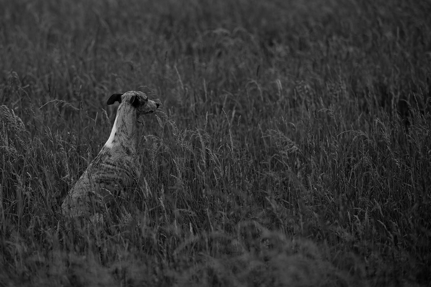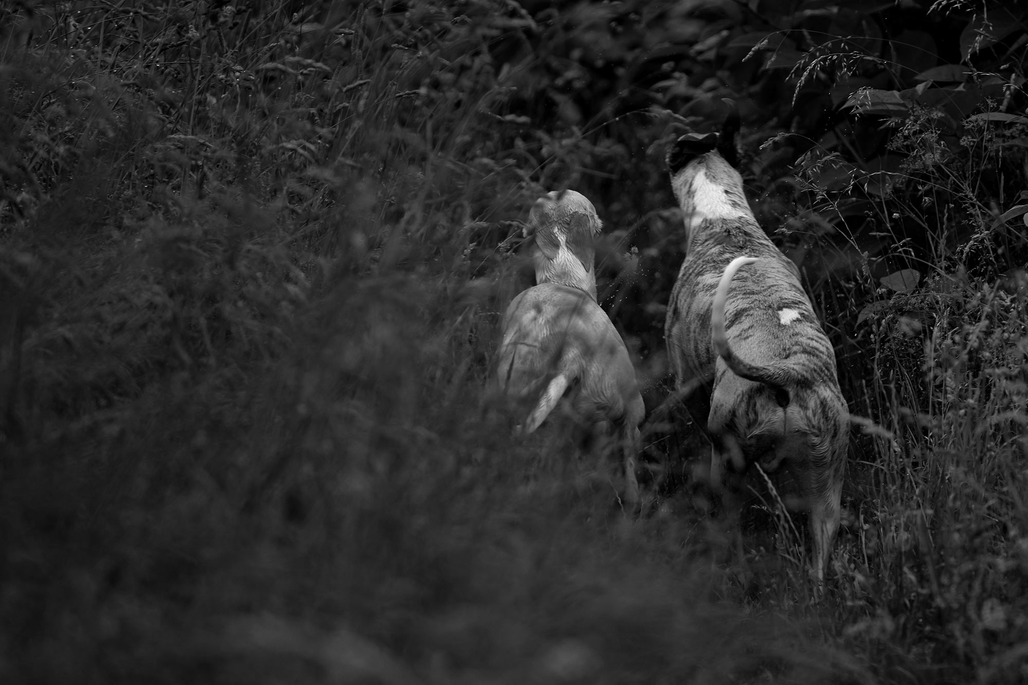 Mir wanderte währenddessen vieles durch den Kopf: Niemals, aber auch wirklich niemals sollte ein Mensch glauben, dass er in einer Situation wie dieser einen wie auch immer gearteten Vorteil gegenüber seinen Sichtjägern hat. Natürlich haben wir einen höheren Standpunkt und können über das Dickicht oder das hohe Gras hinwegsehen. Doch sehen wir nichts, heißt das noch lange nicht, dass auch nichts da ist. Denn unsere Nasen sind nutzlose Gurken, die der Hunde sind ihre verlängerten Augen. Sozusagen. Unsere Ohren sind schlechter und wir sind deutlich langsamer. Außerdem haben wir den Kopf voll mit vielen andere Gedanken, nehmen unsere Umgebung also vollkommen anders wahr. Mono fragt sich niemals, was er kochen will, ob er noch tanken, die Wäsche aufhängen, Fotos bearbeiten oder Mails beantworten muss. Er geht niemals verträumt durch seine Welt. Er ist immer voll da. Mit all seinen Sinnen.