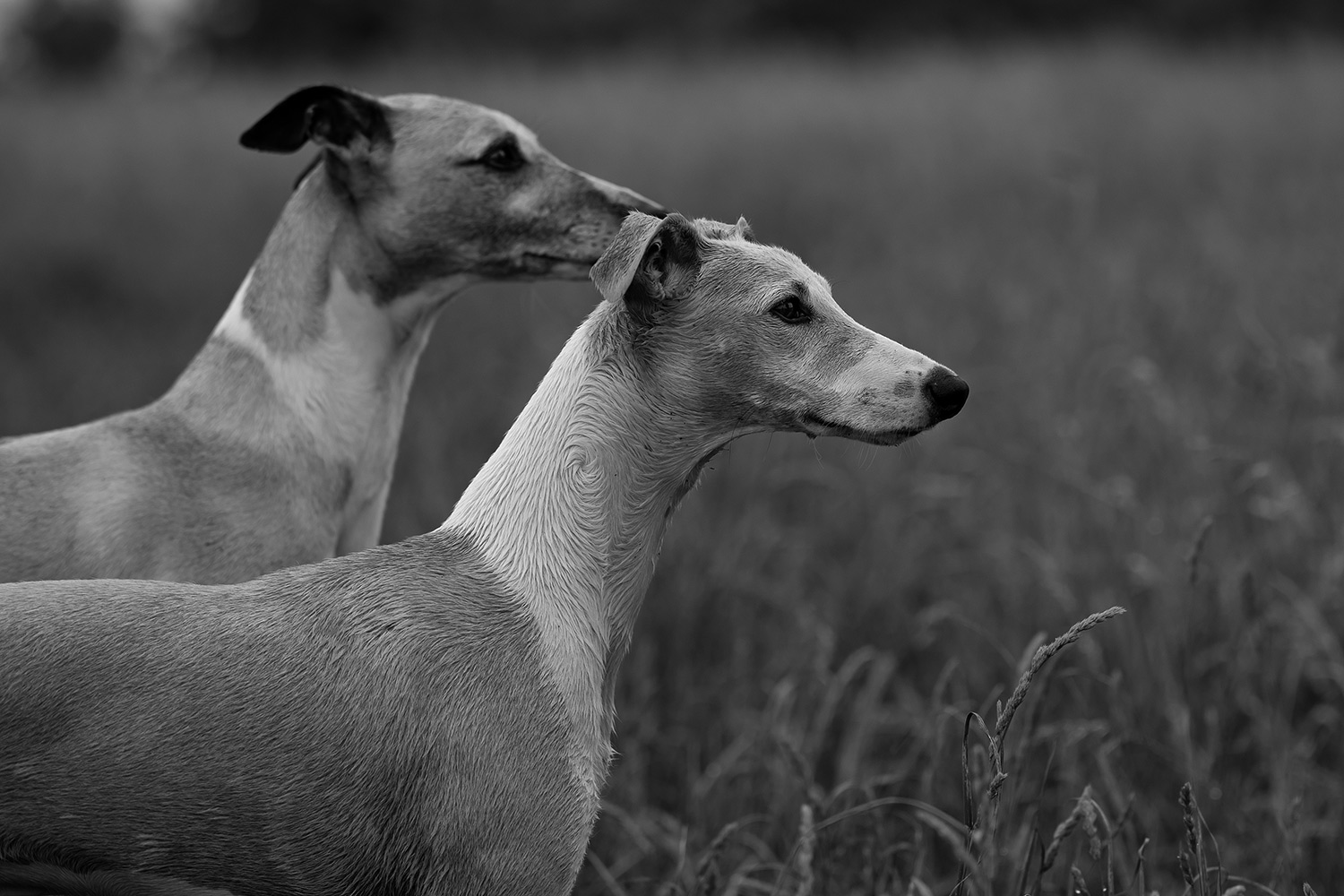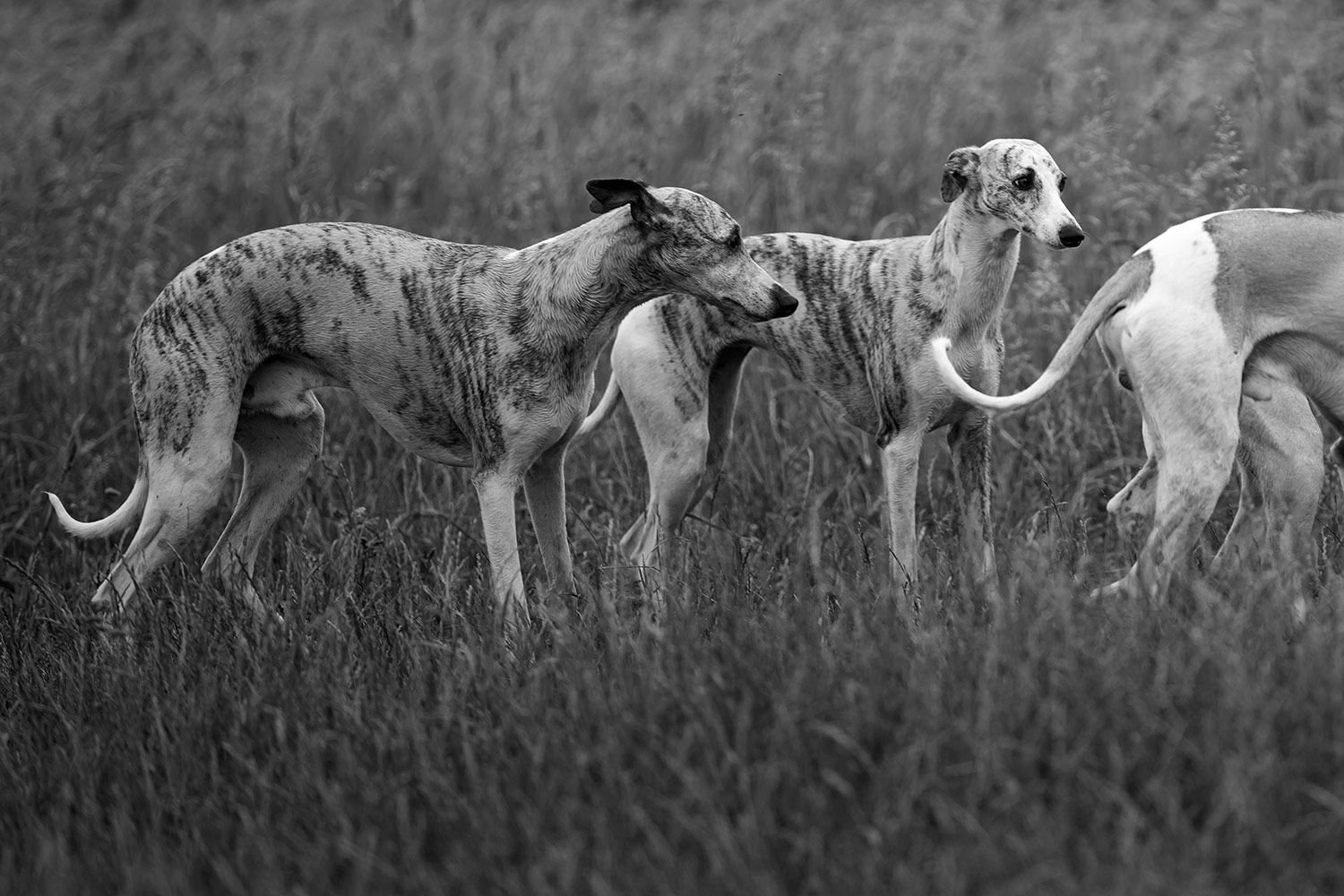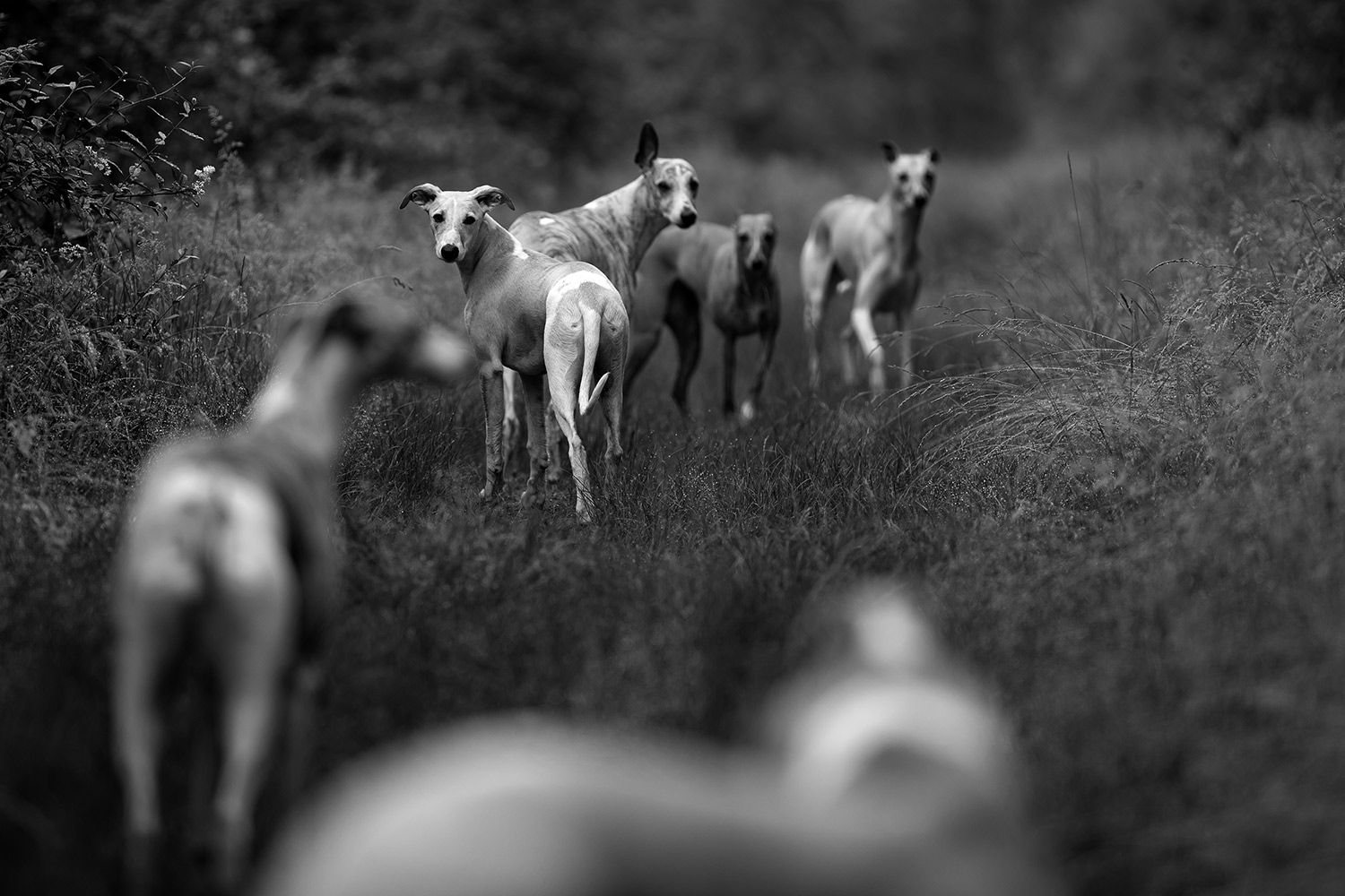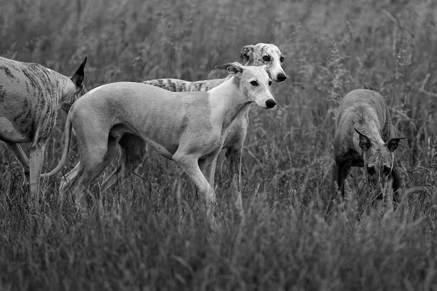 Mir wanderte währenddessen vieles durch den Kopf: Niemals, aber auch wirklich niemals sollte ein Mensch glauben, dass er in einer Situation wie dieser einen wie auch immer gearteten Vorteil gegenüber seinen Sichtjägern hat. Natürlich haben wir einen höheren Standpunkt und können über das Dickicht oder das hohe Gras hinwegsehen. Doch sehen wir nichts, heißt das noch lange nicht, dass auch nichts da ist. Denn unsere Nasen sind nutzlose Gurken, die der Hunde sind ihre verlängerten Augen. Sozusagen. Unsere Ohren sind schlechter und wir sind deutlich langsamer. Außerdem haben wir den Kopf voll mit vielen andere Gedanken, nehmen unsere Umgebung also vollkommen anders wahr. Mono fragt sich niemals, was er kochen will, ob er noch tanken, die Wäsche aufhängen, Fotos bearbeiten oder Mails beantworten muss. Er geht niemals verträumt durch seine Welt. Er ist immer voll da. Mit all seinen Sinnen.