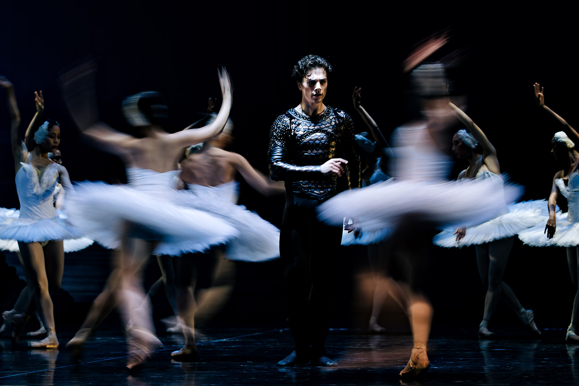 Die Tänzer haben meinen höchsten Respekt, insbesondere Liam Blair, den ich schon mehrfach auf der Bühne und beim Training fotografiert habe. Meinen Geschmack hat dieser Schwanensee allerdings nicht ganz getroffen. Seit Tagen versuche ich herauszukriegen warum. Ich betrachte die Fotos und mag sie, aber nur zu ganz wenigen habe ich eine enge Bindung. Bei vielen weiteren fehlt mir diese typische Panik eines Fotografen, der ein Foto hegen und pflegen, doppelt sichern und für immer bewahren möchte. Ich war nicht konsequent genug. Das wird der Grund sein.