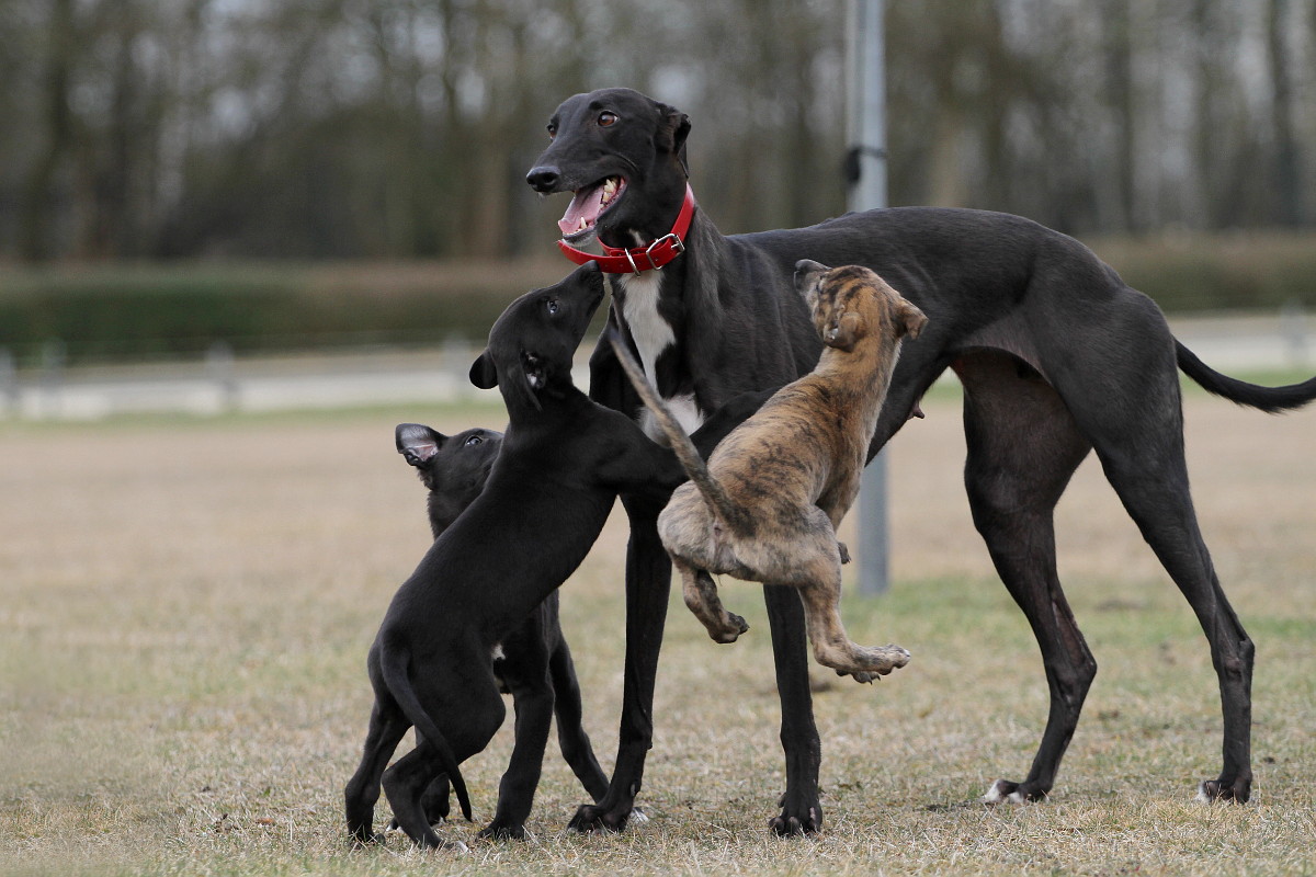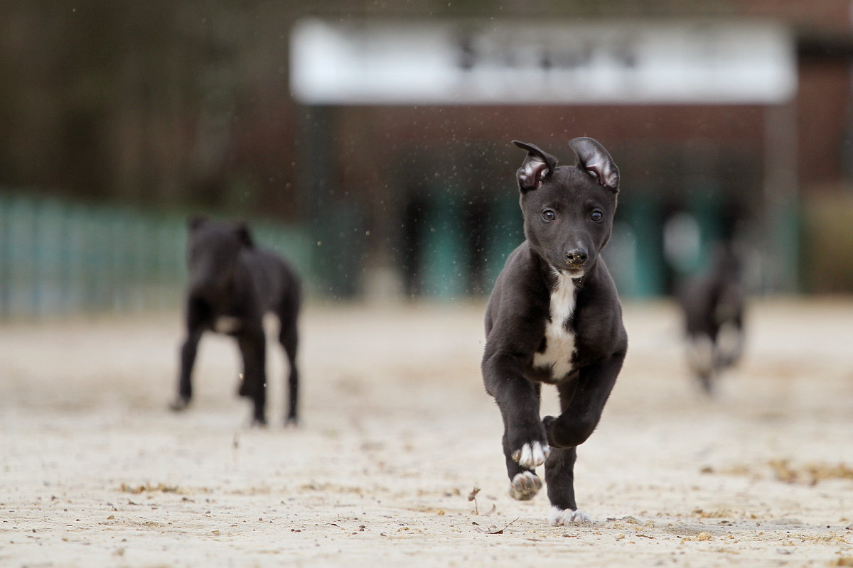 Unter den kleinen Harringay’s Greyhounds von Christiane und Dietmar Niemeyer war auch wieder so ein Kandidat, der mir nicht von Seite weichen wollte. Der kleine Rüde mit den weißen Pfötchen hatte offenbar einen Narren an mir gefressen. Und wenn nicht an mir, dann wohl an den Leckerchen, die ich in der Jackentasche hatte.