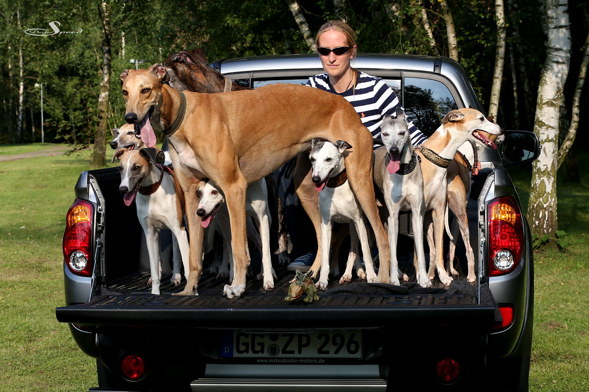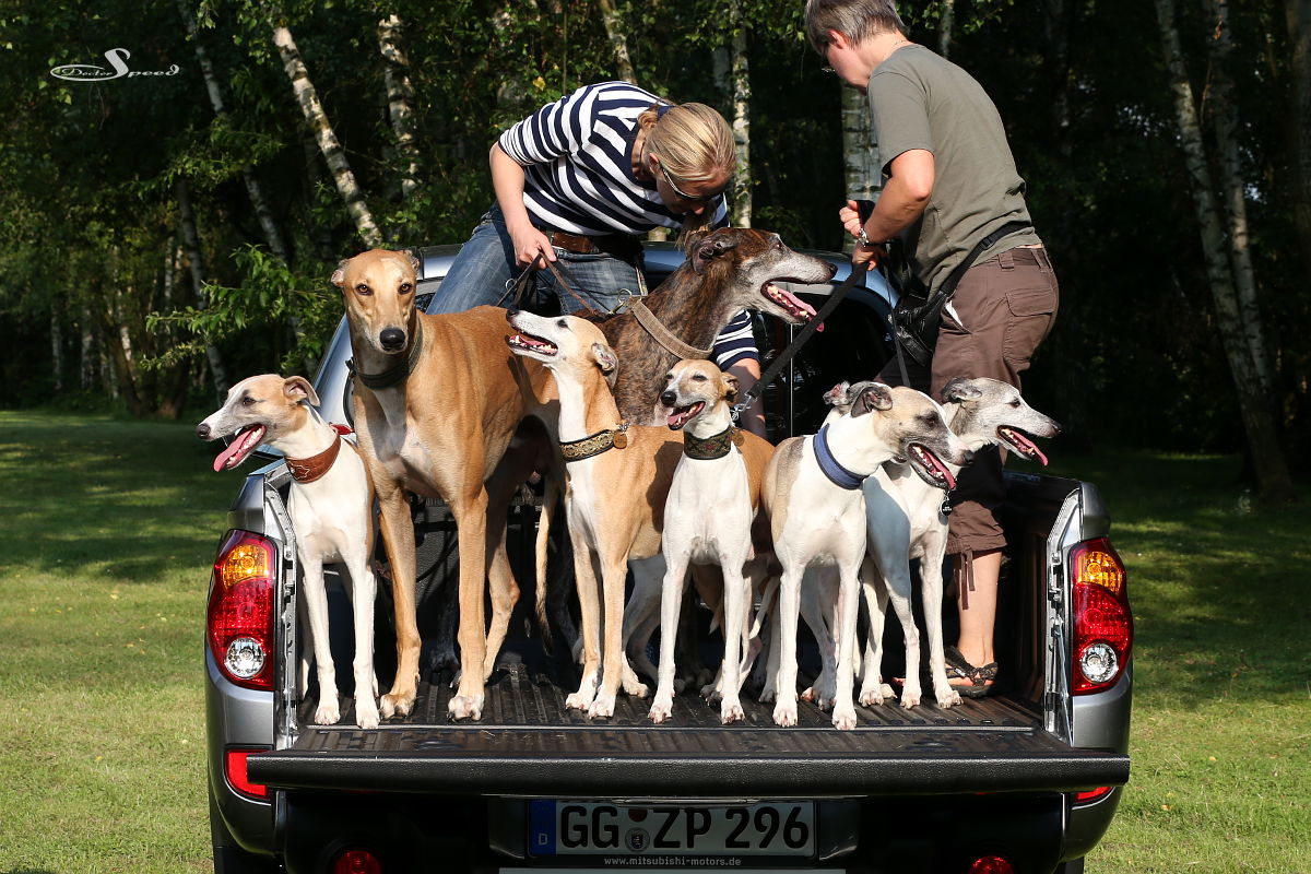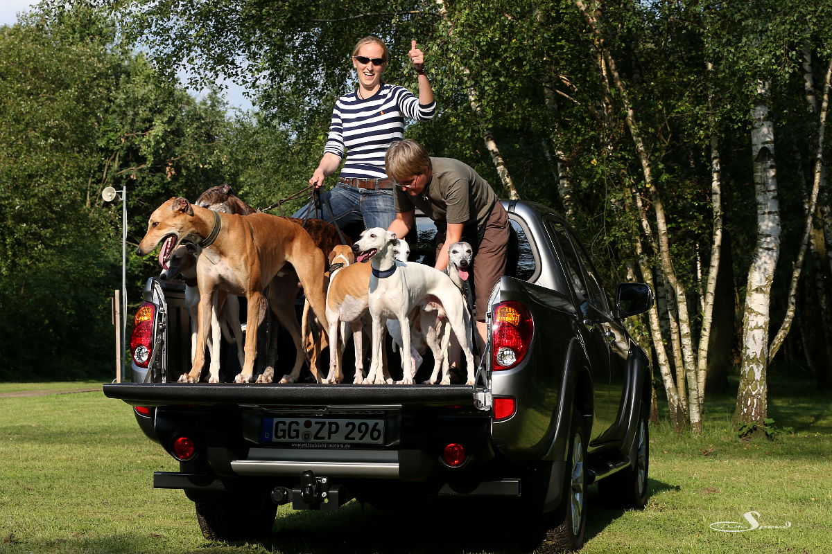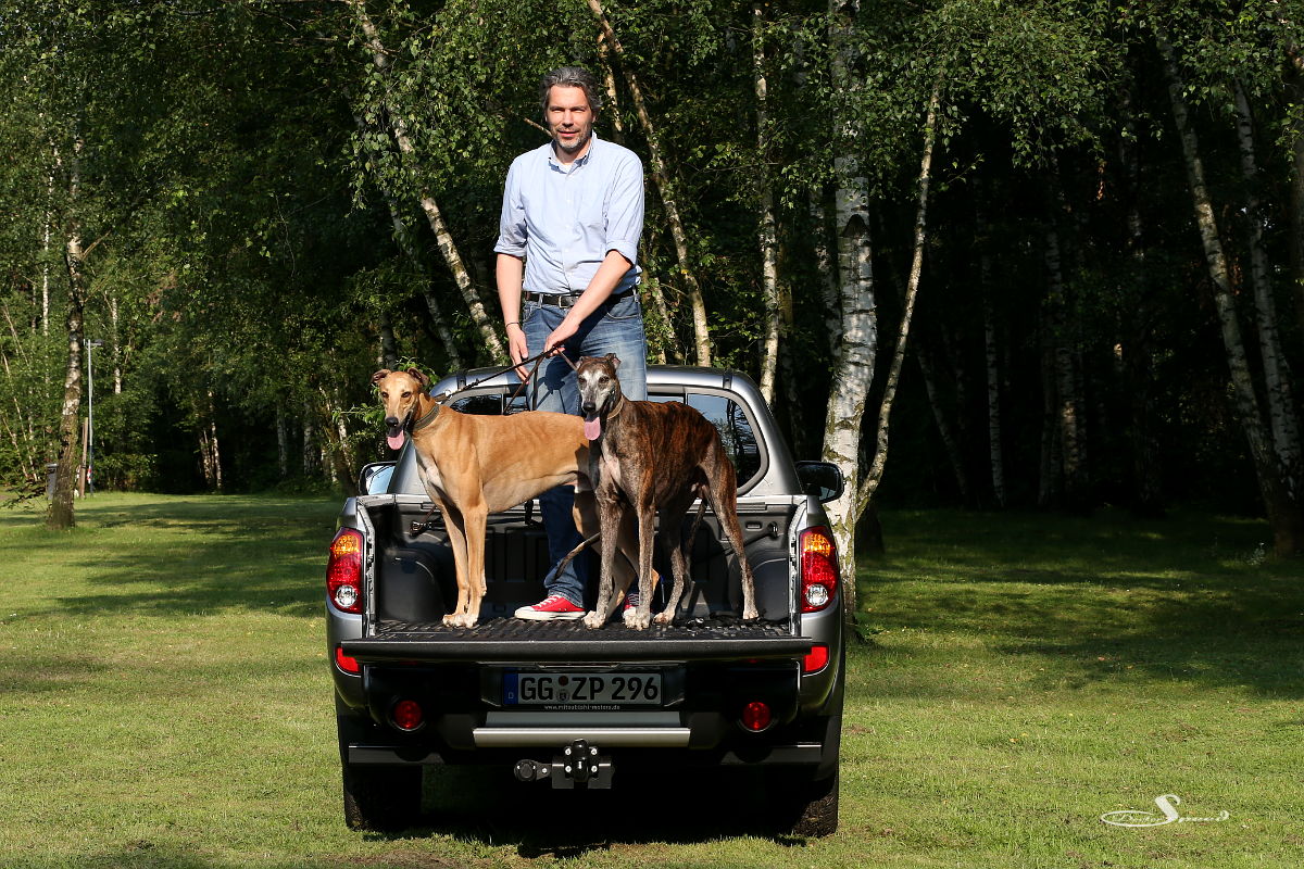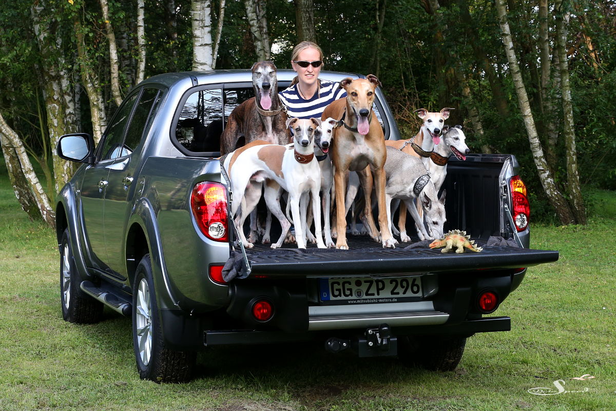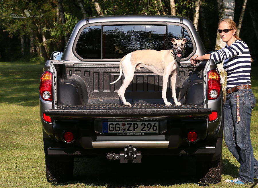 Wie viele Whippets bzw. Greyhounds passen auf einen Mitsubishi L200? Dieses Frage hat sich unser Schwesterblog 1300ccm gestellt, als das stollenbereifte Pickup-Dampfschiff zum Testen bei uns vor Anker lag.