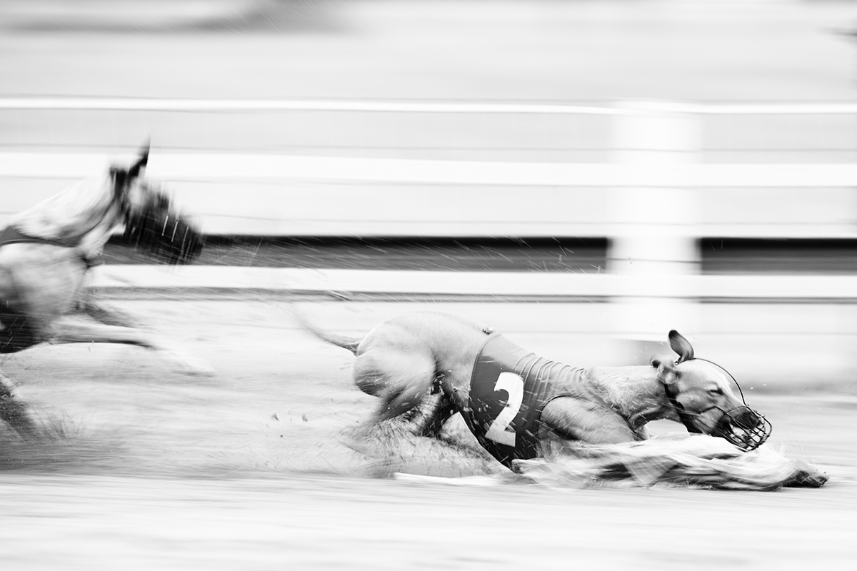 Windhunde auf der Bahn wiederum sind wie Formel 1 Wagen in einer Suppenschüssel. Dort gibt es kleine Körper in extrem schneller Bewegung auf sehr engem Raum. Das packt die 5Ds R nicht mehr. Sie löst ein Mal aus, dann sind die Hunde weg. Doch das kann man dieser Kamera nicht zum Vorwurf machen, denn dafür ist sie nicht gemacht. Hier braucht es in der Tat die hohe Bildrate der 1D X Mark II damit überhaupt brauchbare Bilder entstehen. 200mm Brennweite sind dort ideal für formatfüllende Bilder. Für die ganz langen Belichtungszeiten, bei den Greyhounds etwa 1/60 sek., ist das 70-200er 1:2,8L ideal.