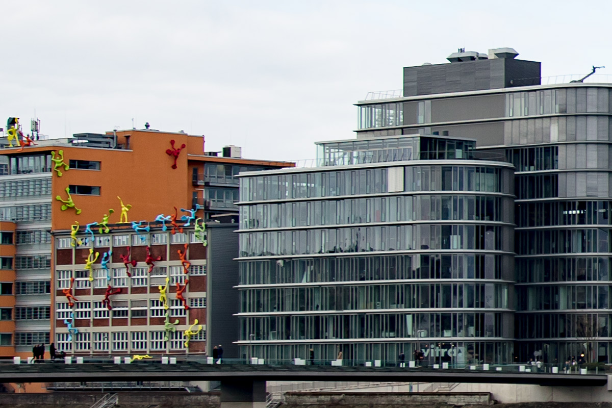 Stehe ich vor einem Gebäude und schaue hoch, dann verjüngen sich seine Linien noch oben hin sehr stark. Das ist allein unserer perspektivischen Wahrnehmung geschuldet, denn eigentlich laufen sie ja parallel. Stünde ich in einem Raum eines gegenüberliegenden Gebäudes etwa in einem der mittleren Stockwerke, sähe ich diese Linien tatsächlich parallel. Je weiter ich mich von einem Objekt entferne (die Galerie mit den Totalen oben), desto gerader erscheint es mir.