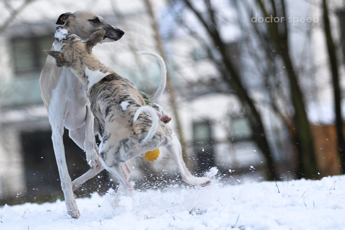 Ganz im Gegensatz zu Mr.Clark, der seinem Erzfeind nur allzu gerne eine Scheitel bis zum Bauchnabel gezogen hätte, ignoriert Mono den dicken Charly standhaft. Seine Whippetarroganz lässt den garstigen Terrier einfach abtropfen. Nicht dass Charly jemals einen Grund gebraucht hätte, aber er findet keine Angriffsfläche. Außerdem kann er wohl Danny nicht einordnen. Charly ist zwar nicht die hellste Kerze auf der Torte, aber durchzählen kann er wohl. Also hält er sich im Rahmen seiner Möglichkeiten zurück. Sein Herrchen hingegen ist extrovertiert wie immer. Sein blauer Trainingsanzug zieht nach wie vor die unverkennbare Kümmerling-Fahne hinter sich her und sein lallendes „Scharrrrrlyyy“ ist jeden Abends weithin zu hören.